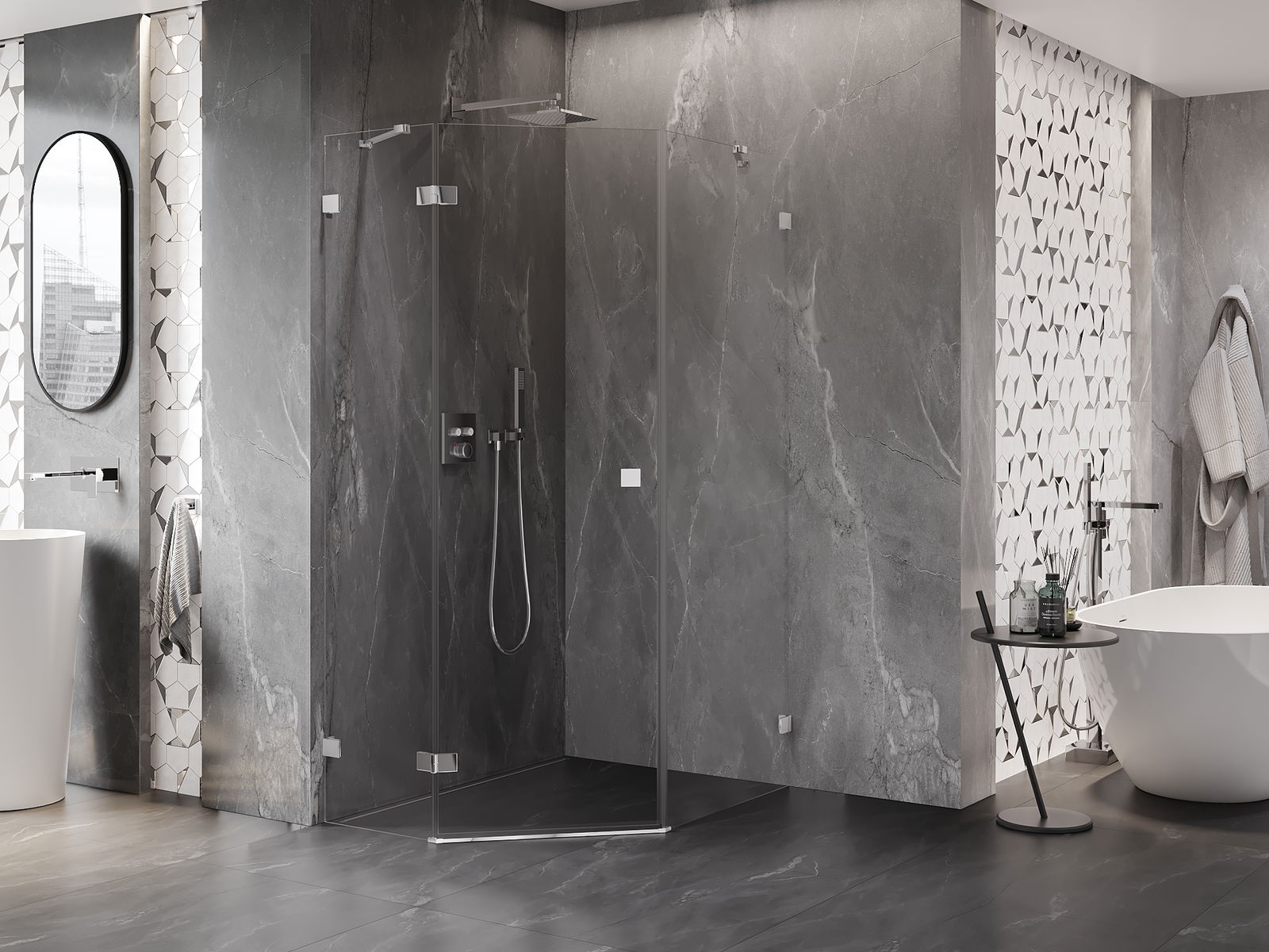Mexen Lunar петоъгълна душ кабина с шарнир лява 80 x 90 см, прозрачна, хромирана - 831-080L-090P-01-00-L