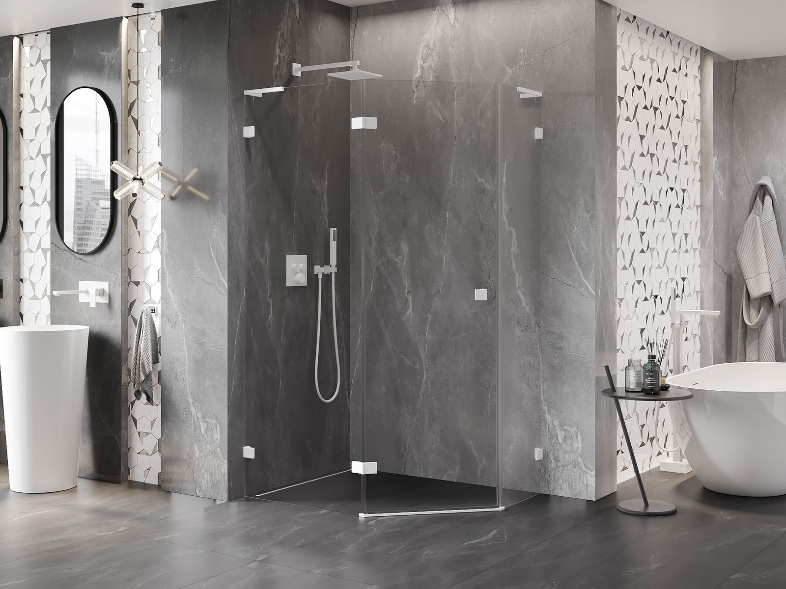 Скобите и пантите са изработени от много издръжлив месинг и създават плосък стъклен панел. Това е отличен избор, който съчетава елегантност, издръжливост и модерен дизайн. Благодарение на такива решения, душът придобива естетика и същевременно улеснява поддържането на чистота.