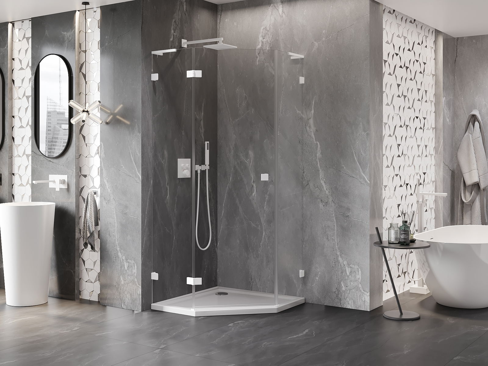Mexen Lunar L петстенна душ кабина с врата на панти лява 100 x 100 см, прозрачно, бял - 831L-100L-100P-20-00-L