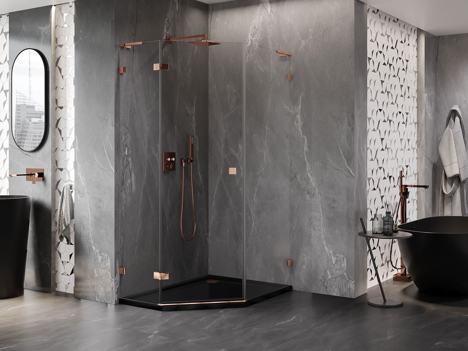 Mexen Lunar L петоъгълна душ кабина, отваряща се наляво, 90 x 100 см, прозрачна, розово злато - 831L-090L-100P-60-00-L