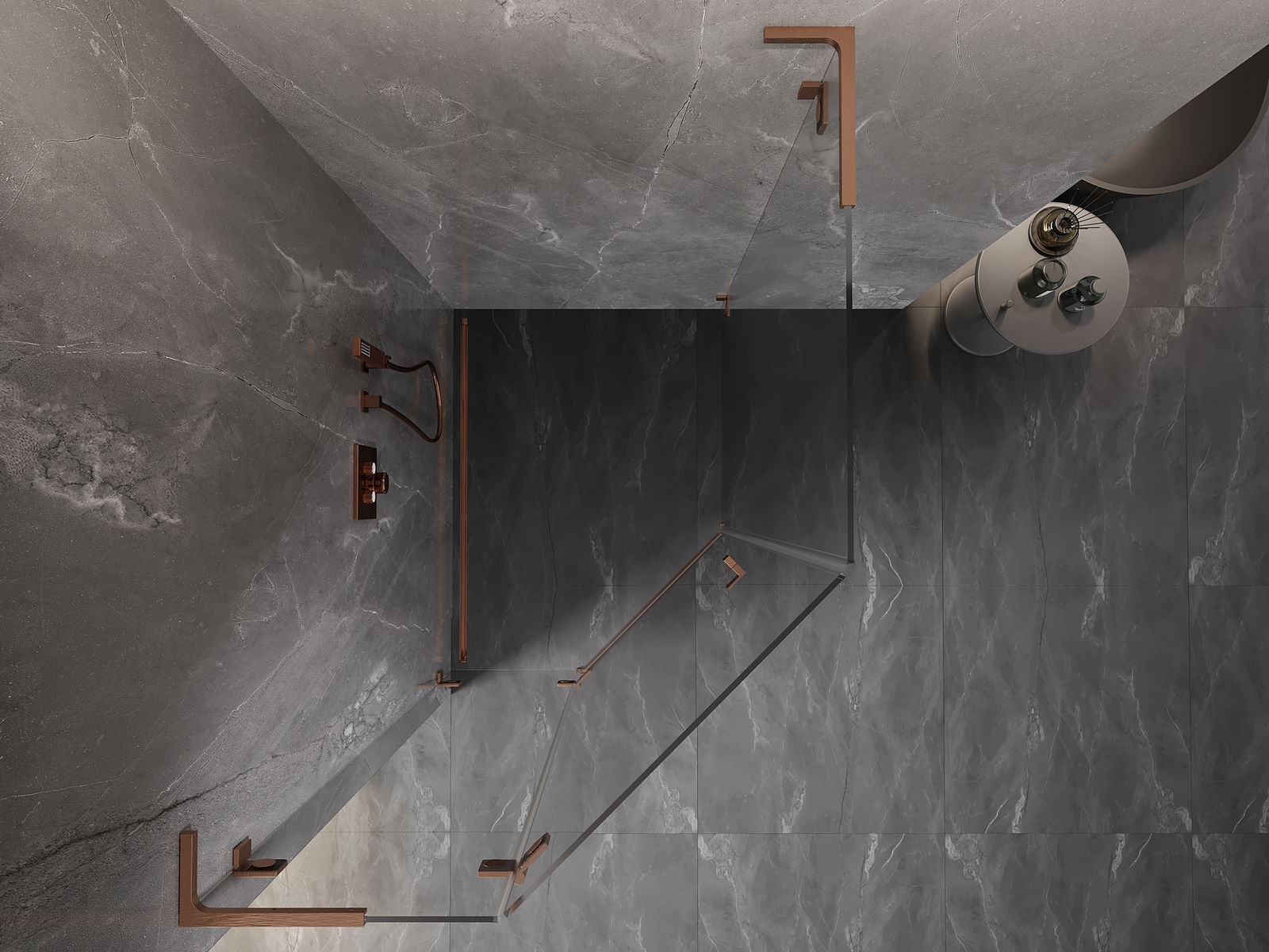 Mexen Lunar L пентагонална накланяща се лява душ кабина 80 x 90 см, прозрачна, матирана мед – 831L-080L-090P-65-00-L