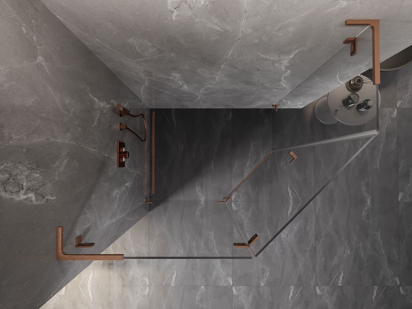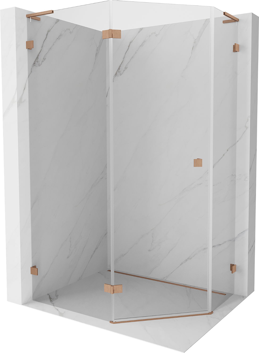 Mexen Lunar L петостенна душ кабина с отваряща се врата, лява 90 x 80 см, прозрачна, матова мед - 831L-090L-080P-65-00-L