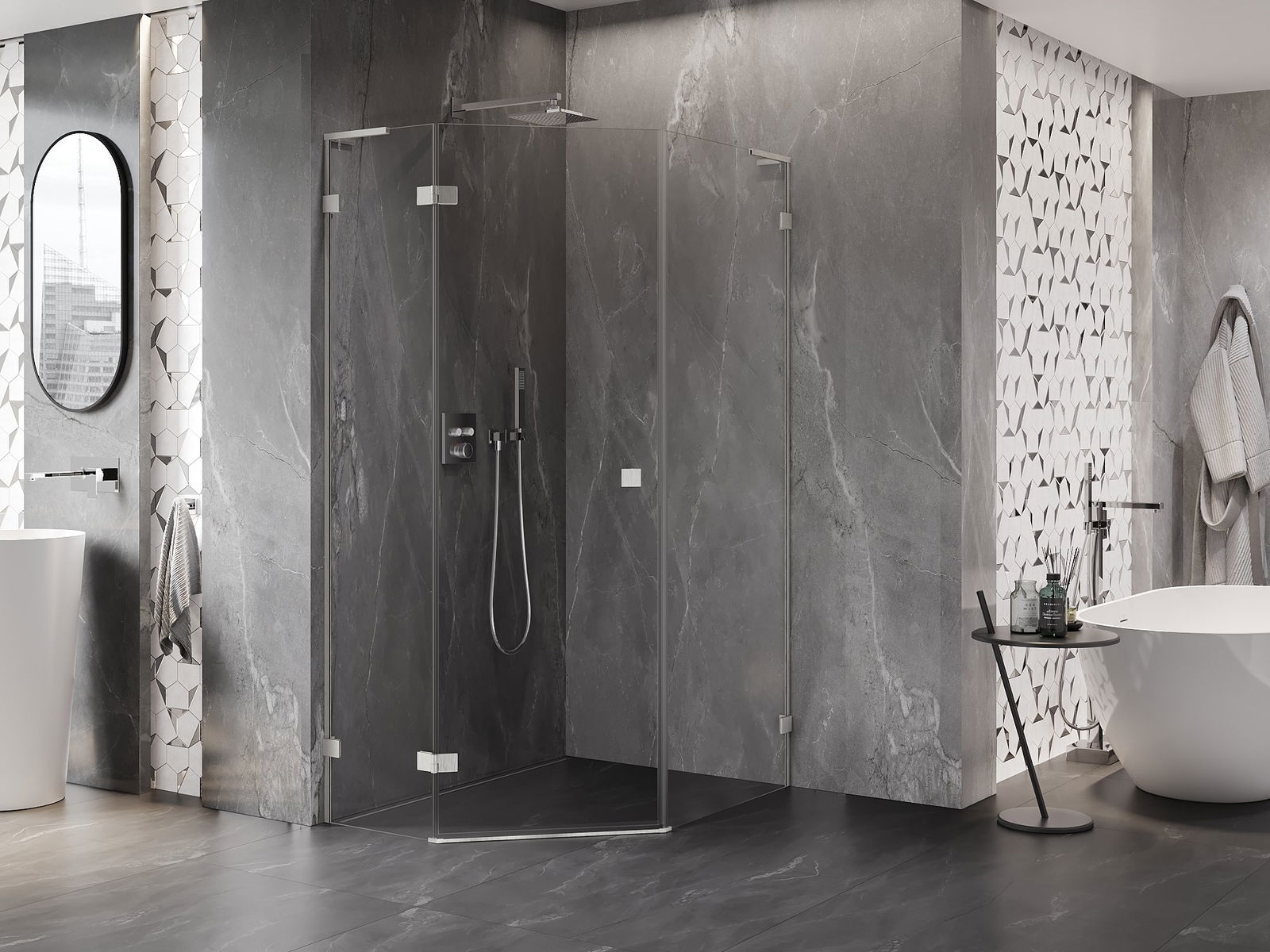 Mexen Lunar L петостенна шарнирна душ кабина лява 80 x 90 см, прозрачна, четкан
