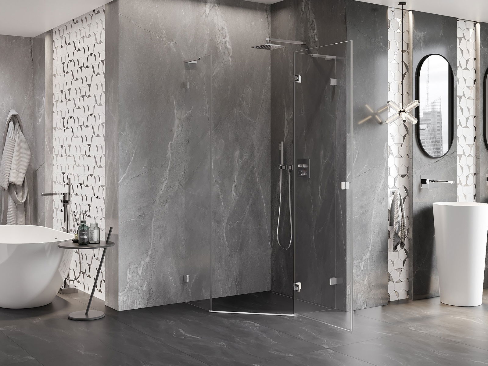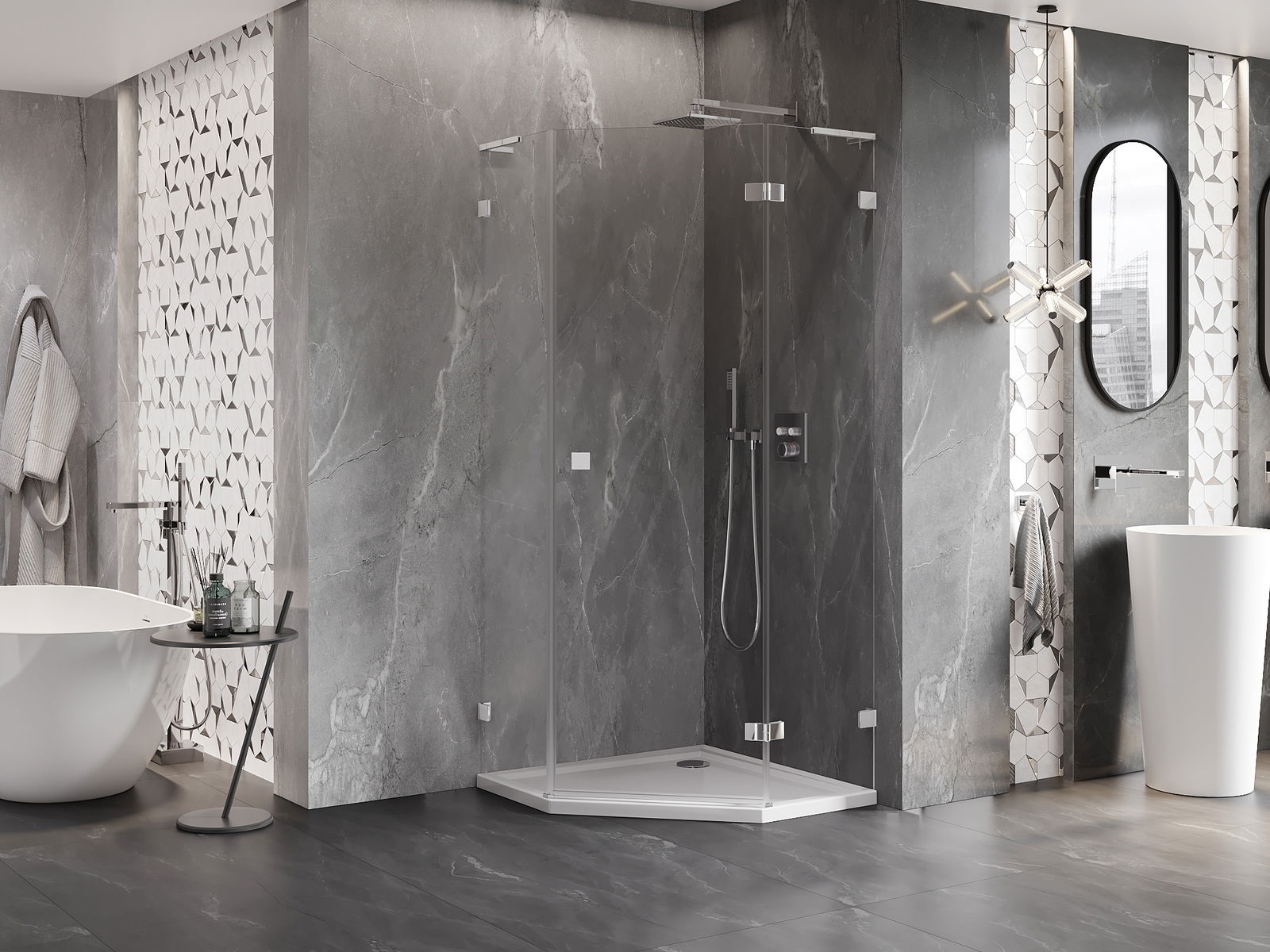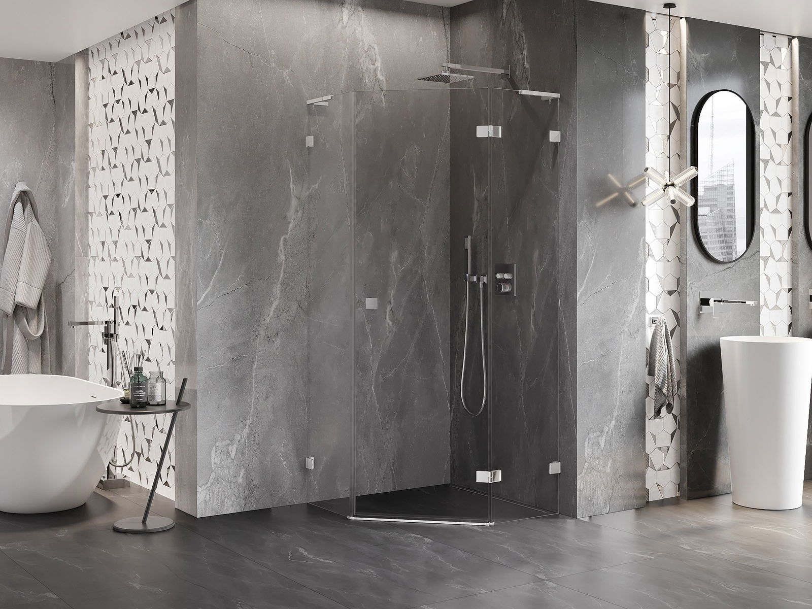 Mexen Lunar L петоъгълна душ кабина с отваряема дясна врата 80 x 80 см,