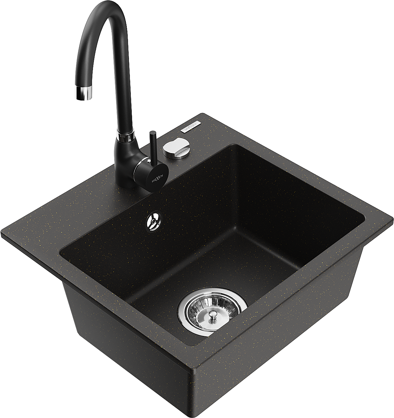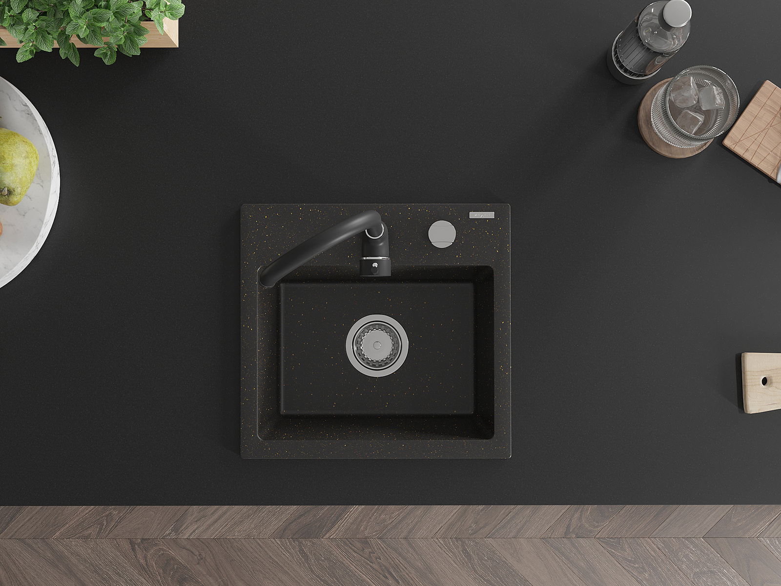 Mexen Milo гранитна мивка с 1 отделение и кухненски смесител Телма, черен/златен - 6505-75-670200-70