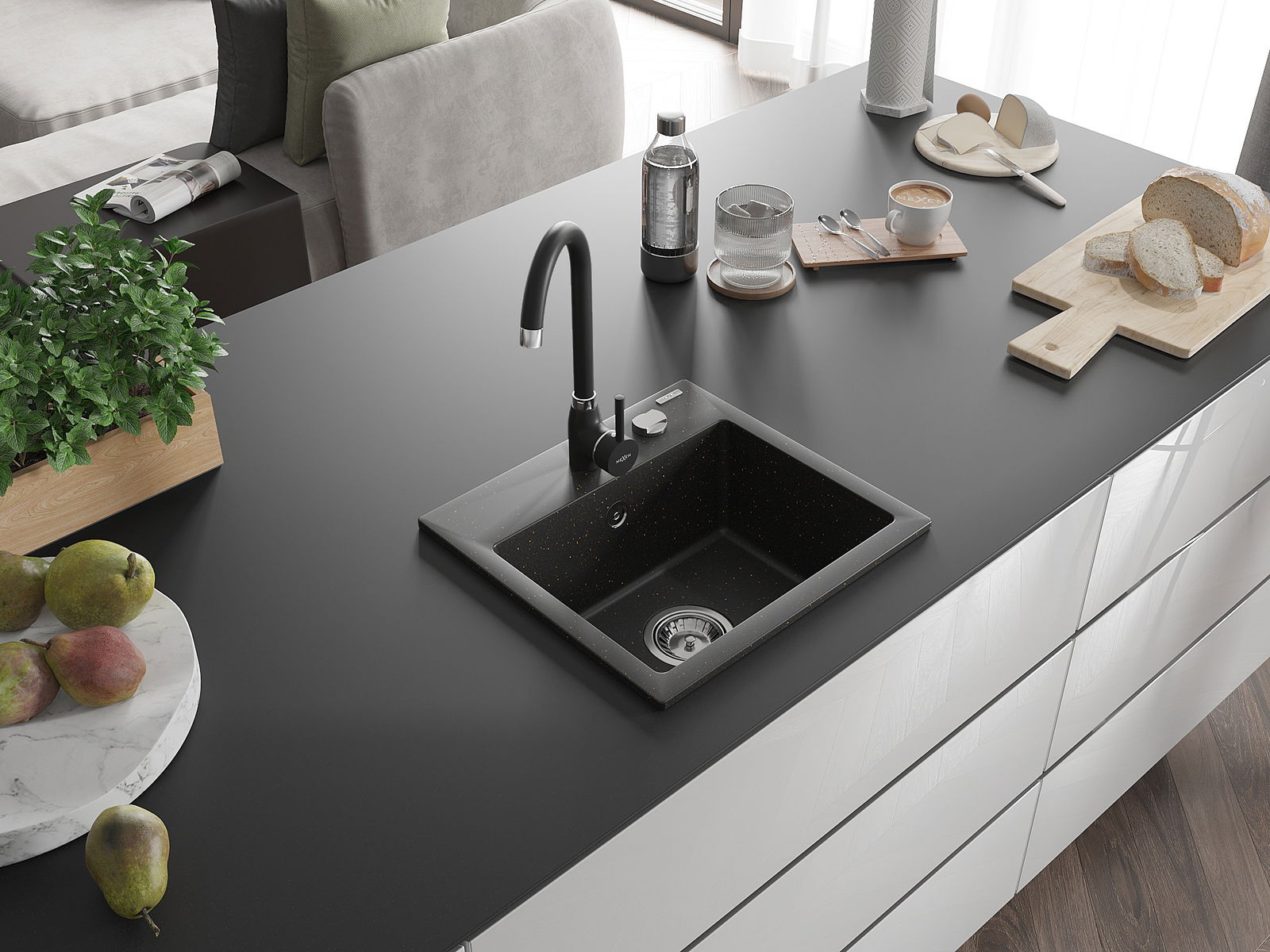 Мивката е направена от висококачествен гранит. Това е елегантно и най -вече практично допълнение към всяка кухня, независимо от нейния стил. Висококачествената и гранитна издръжливост осигуряват много години употреба.