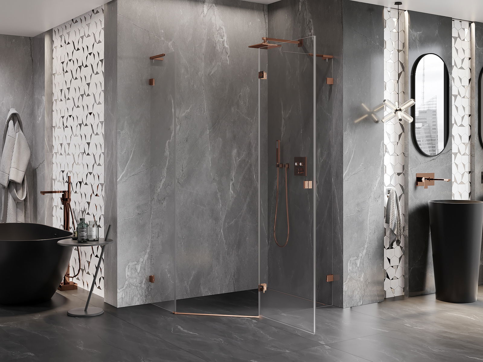 Скобите и пантите са изработени от много издръжлив месинг и създават плосък стъклен панел. Това е отличен избор, който съчетава елегантност, издръжливост и модерен дизайн. Благодарение на такива решения, душът придобива естетика и същевременно улеснява поддържането на чистота.