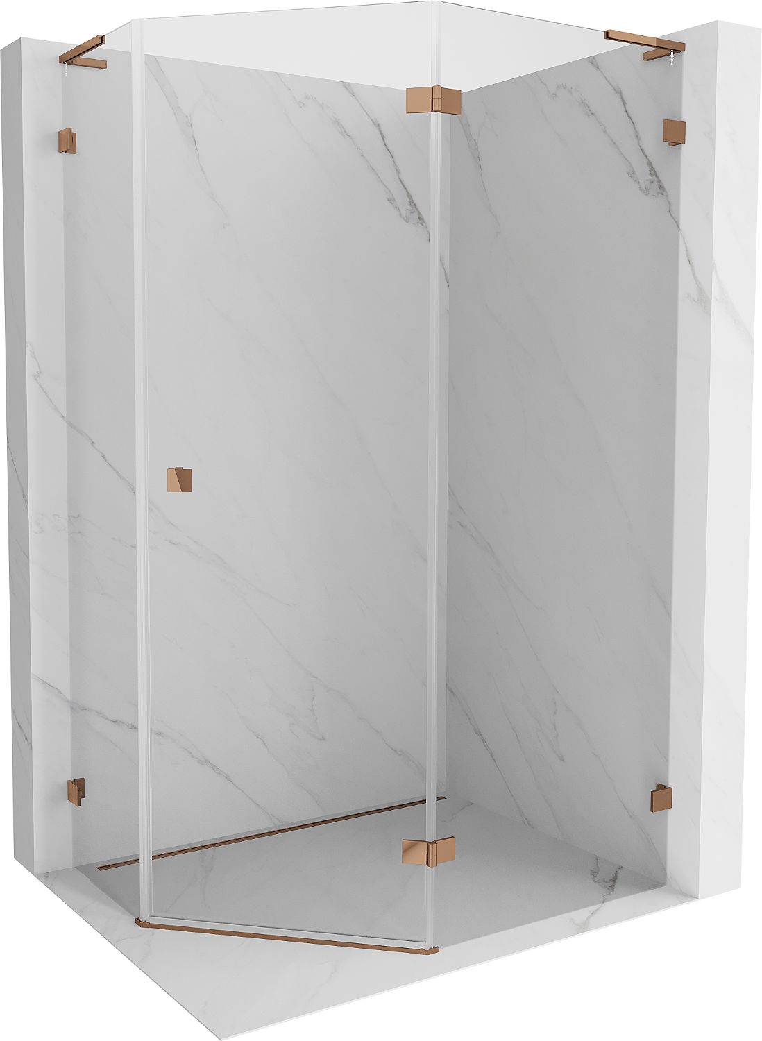 Mexen Lunar L петостенна душ кабина с десни панти 90 x 80 см, прозрачно стъкло, розово злато - 831L-090P-080L-60-00-P