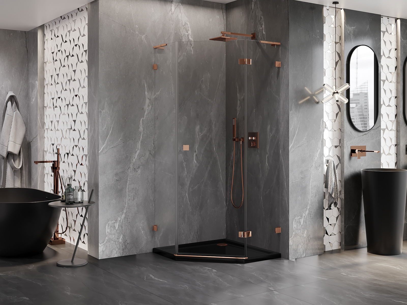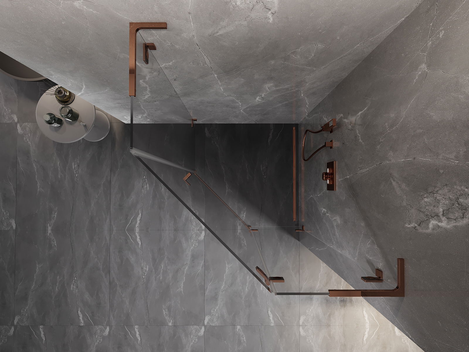 Mexen Lunar L петстенна душ кабина с отваряща се дясна врата 90 x 90 см, прозрачна, розово злато - 831L-090P-090L-60-00-P