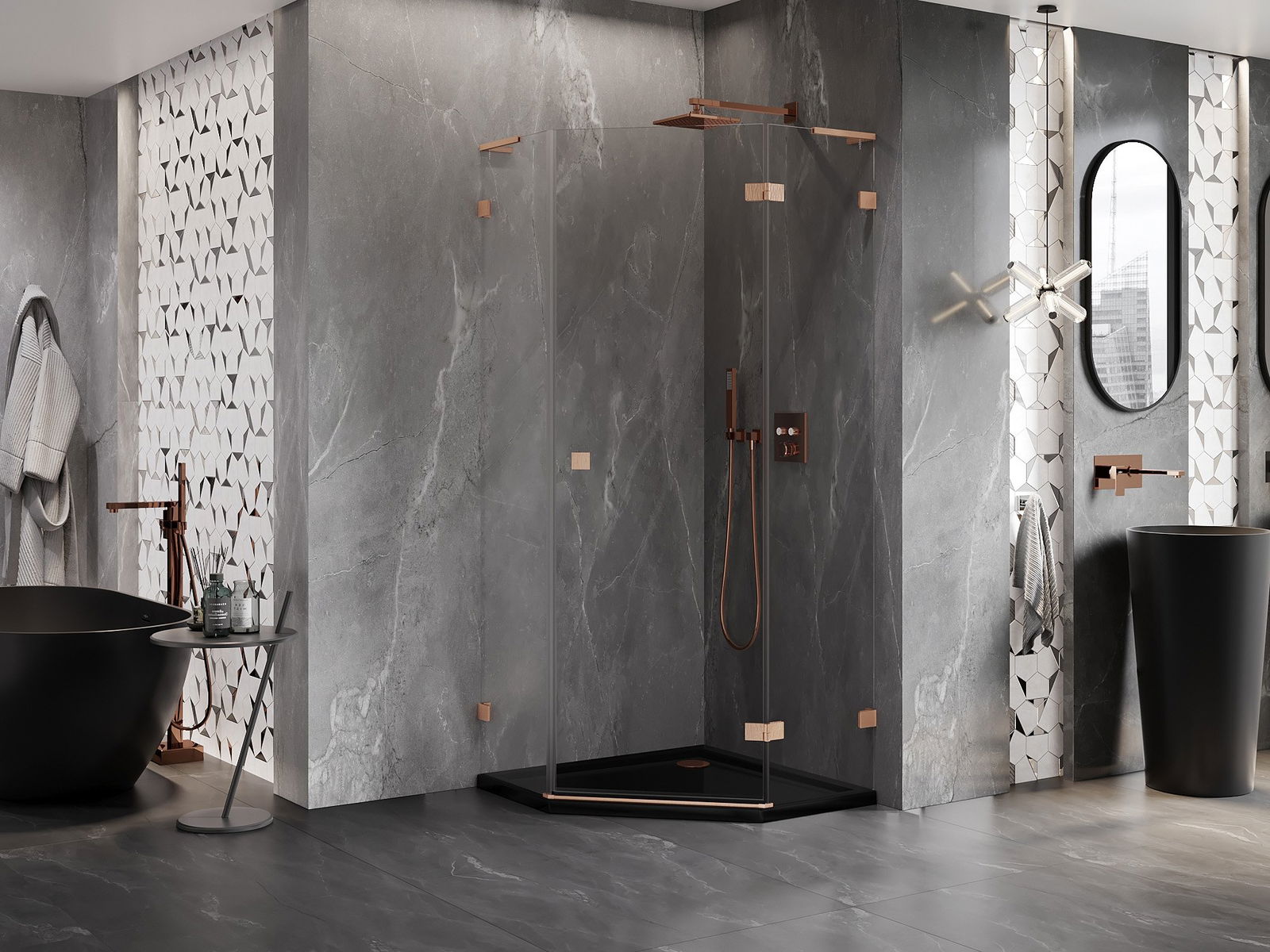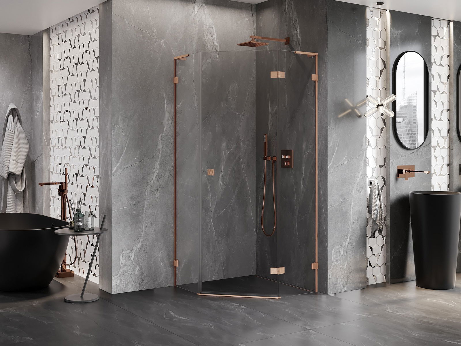 Скобите и пантите са изработени от много издръжлив месинг и създават плосък стъклен панел. Това е отличен избор, който съчетава елегантност, издръжливост и модерен дизайн. Благодарение на такива решения, душът придобива естетика и същевременно улеснява поддържането на чистота.