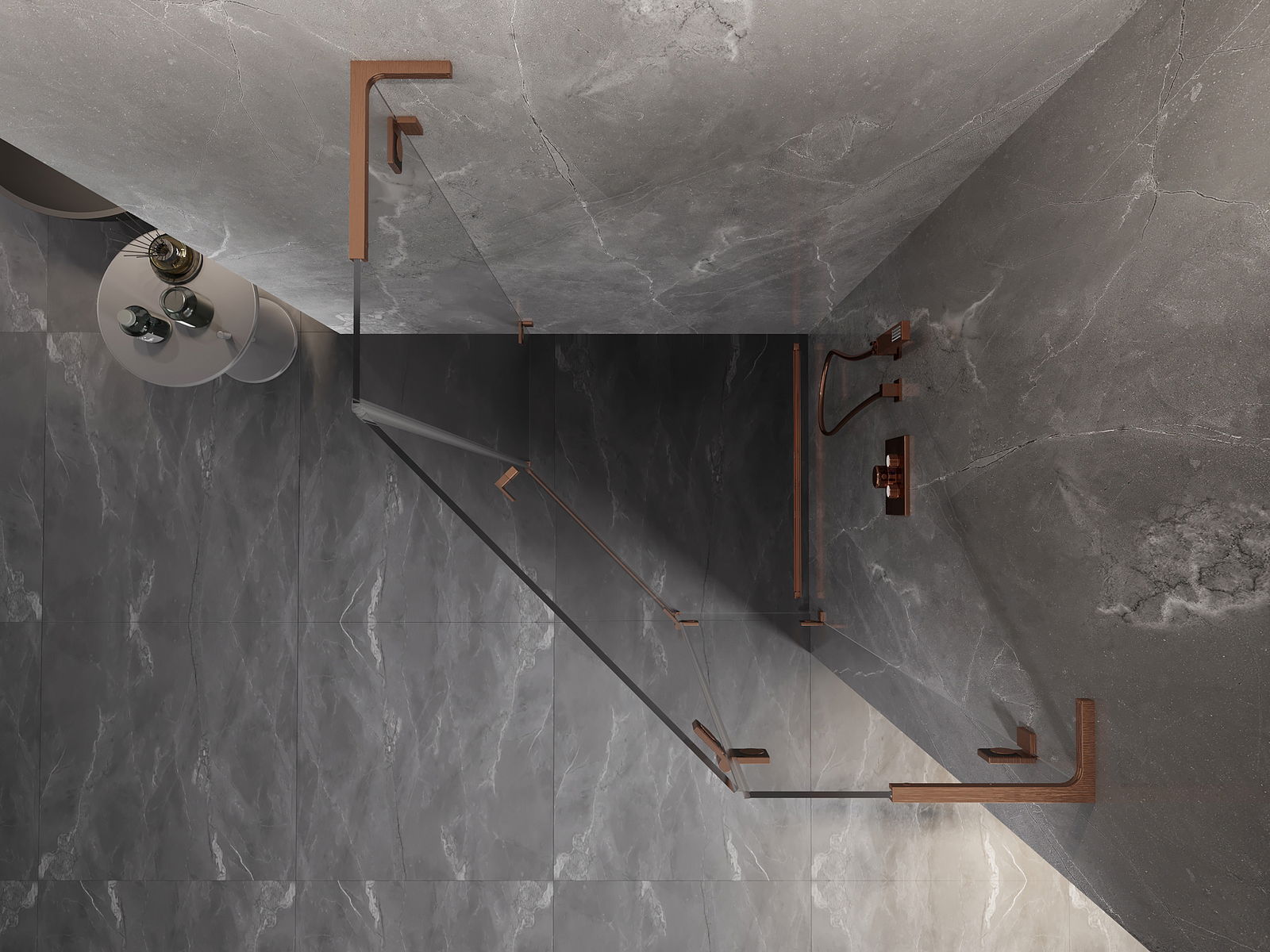 Mexen Lunar L петугълна подвижна душ кабина дясна 90 x 90 см, прозрачна, четкан мед - 831L-090P-090L-65-00-P