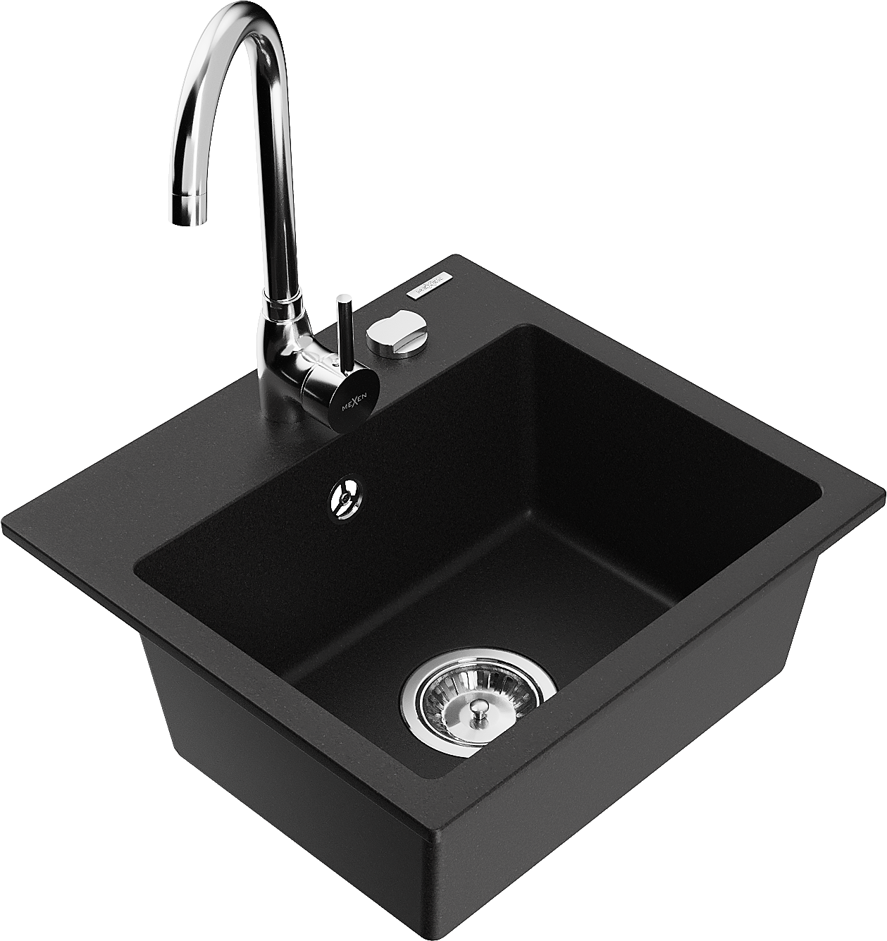 Mexen Milo гранитна кухненска мивка с една камера и кухненски смесител Telma, черен - 6505-77-670200-00