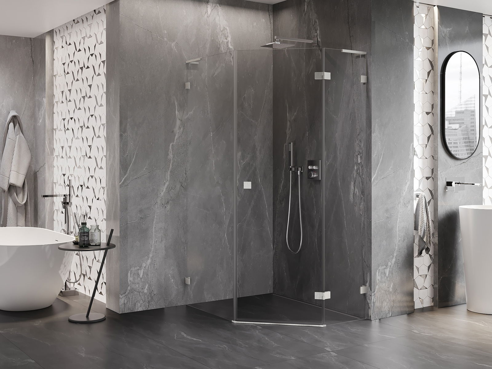 Скобите и пантите са изработени от много издръжлив месинг и създават плосък стъклен панел. Това е отличен избор, който съчетава елегантност, издръжливост и модерен дизайн. Благодарение на такива решения, душът придобива естетика и същевременно улеснява поддържането на чистота.