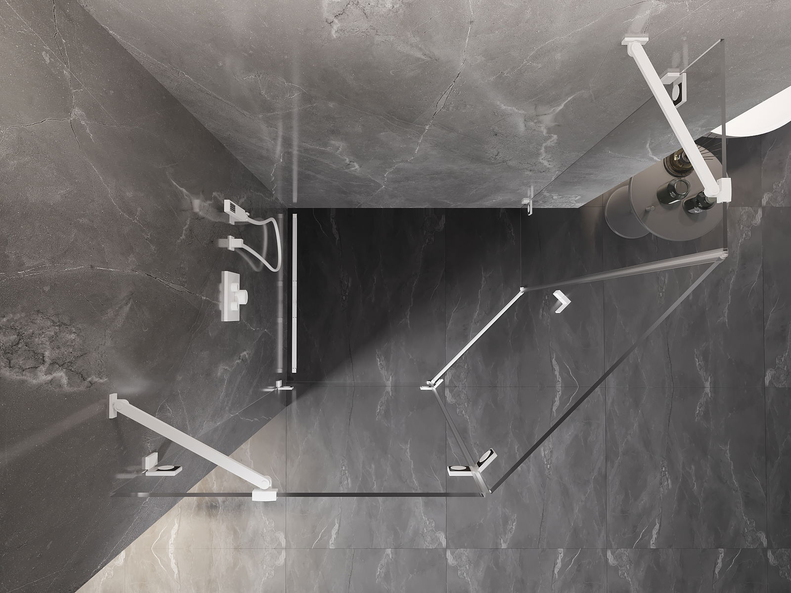 Удобната и практична дръжка е изработена от здрав и устойчив метал. Модерната форма в съчетание с покритието, съответстващо на цвета на профилите, придава на цялото модерен и стилен вид, подчертавайки естетиката на всяка баня.