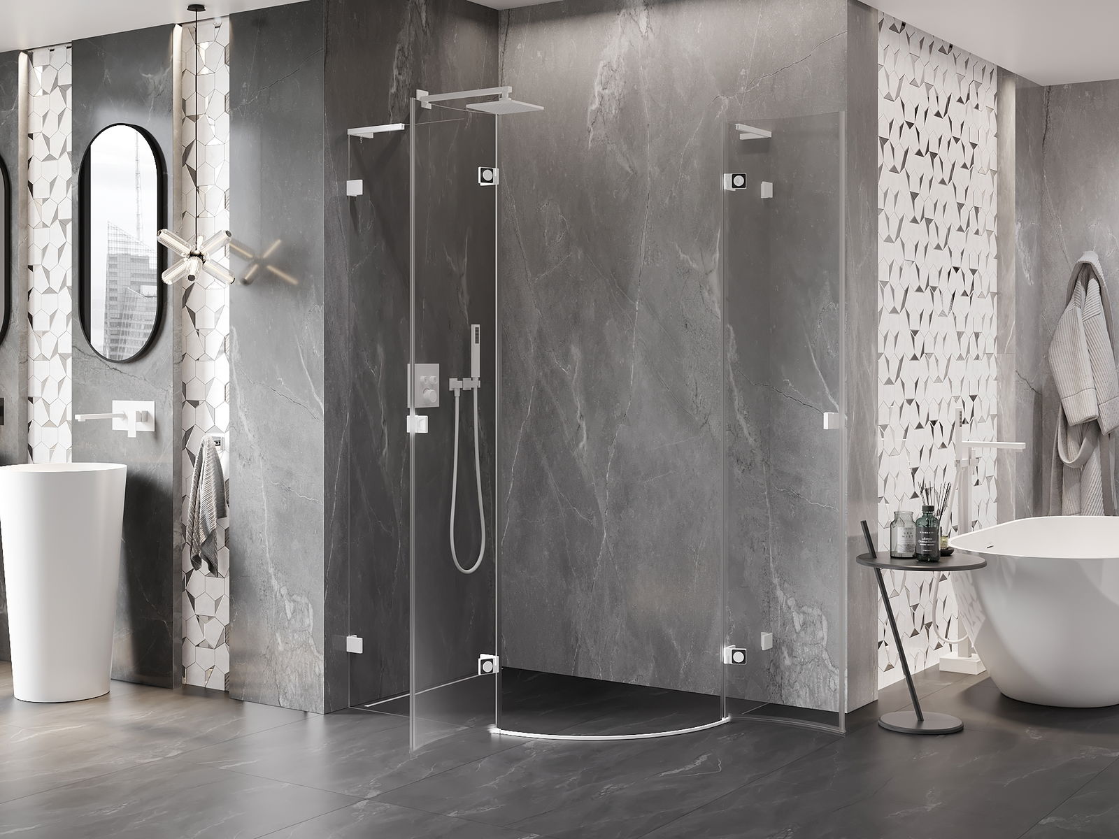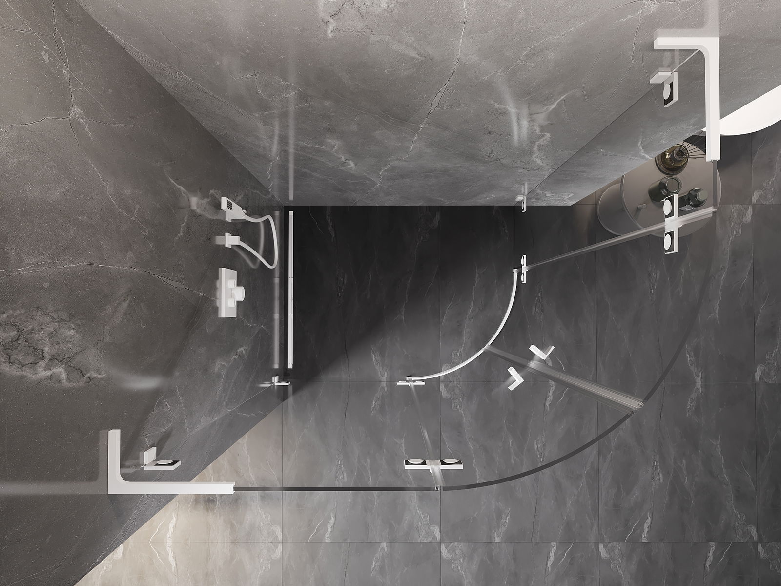 Удобната и практична дръжка е изработена от здрав и устойчив метал. Модерната форма в съчетание с покритието, съответстващо на цвета на профилите, придава на цялото модерен и стилен вид, подчертавайки естетиката на всяка баня.