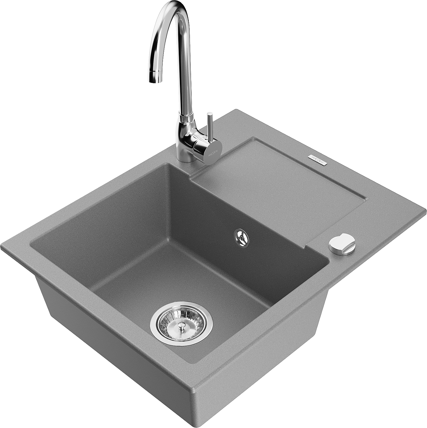 Mexen Enzo гранитна мивка с 1 отделение и отцедник, с кухненски смесител Telma, сива - 6506-71-670200-00