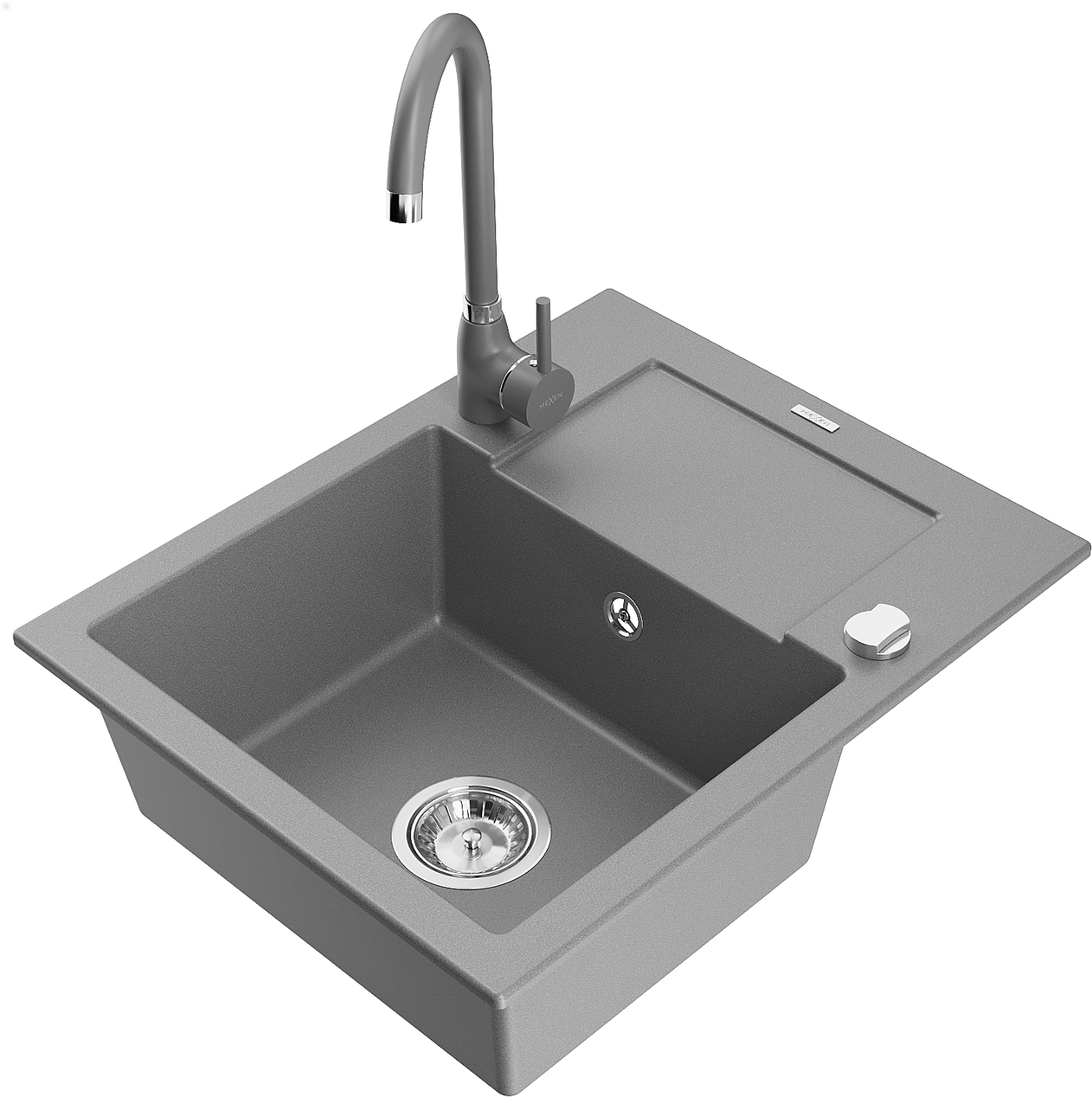 Mexen Enzo мивка от гранит с 1 отделение с оцедник и кухненски смесител Telma, сива - 6506-71-670200-71
