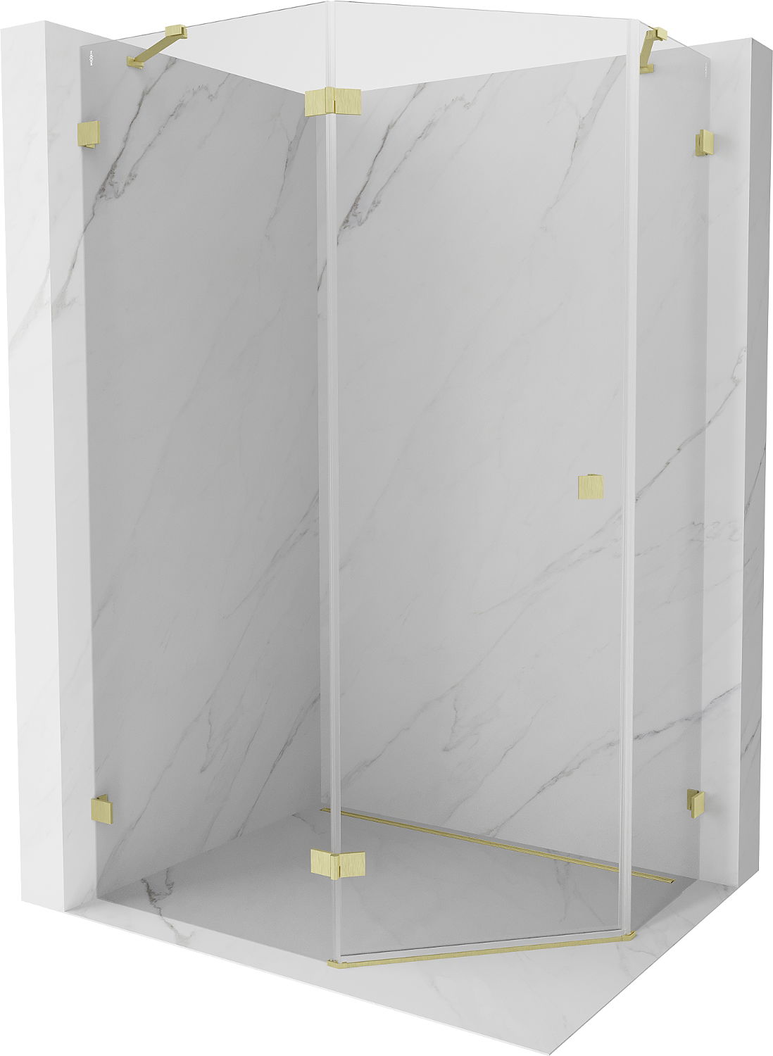 Mexen Lunar петoъгълна душ кабина с лява врата 90 x 80 см, прозрачна, златна с четкано покритие - 831-090L-080P-55-00-L