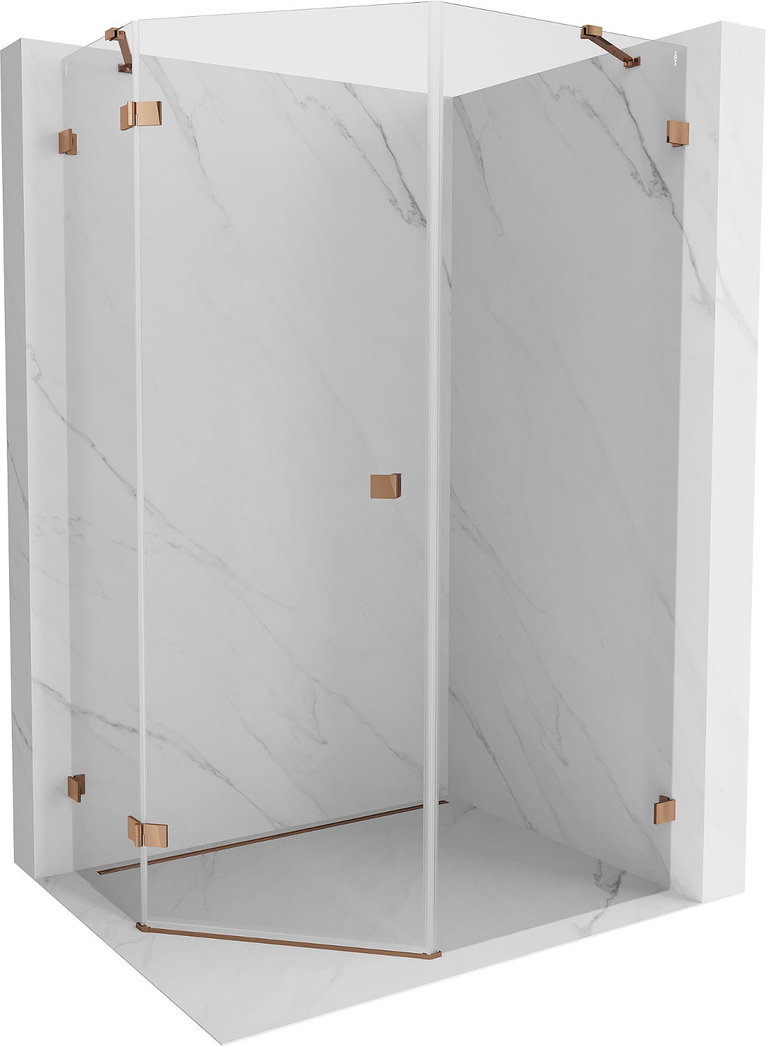 Mexen Lunar петстенна душ кабина с панти, лява 80 x 100 cm, прозрачна, розово злато - 831-080L-100P-60-00-L