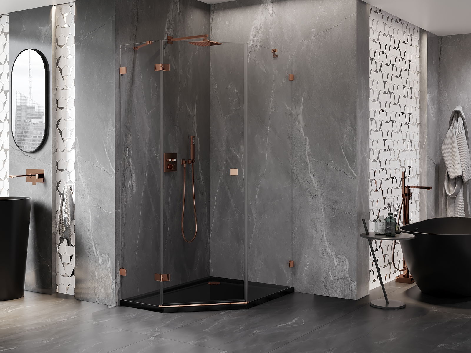 Скобите и пантите са изработени от много издръжлив месинг и създават плосък стъклен панел. Това е отличен избор, който съчетава елегантност, издръжливост и модерен дизайн. Благодарение на такива решения, душът придобива естетика и същевременно улеснява поддържането на чистота.