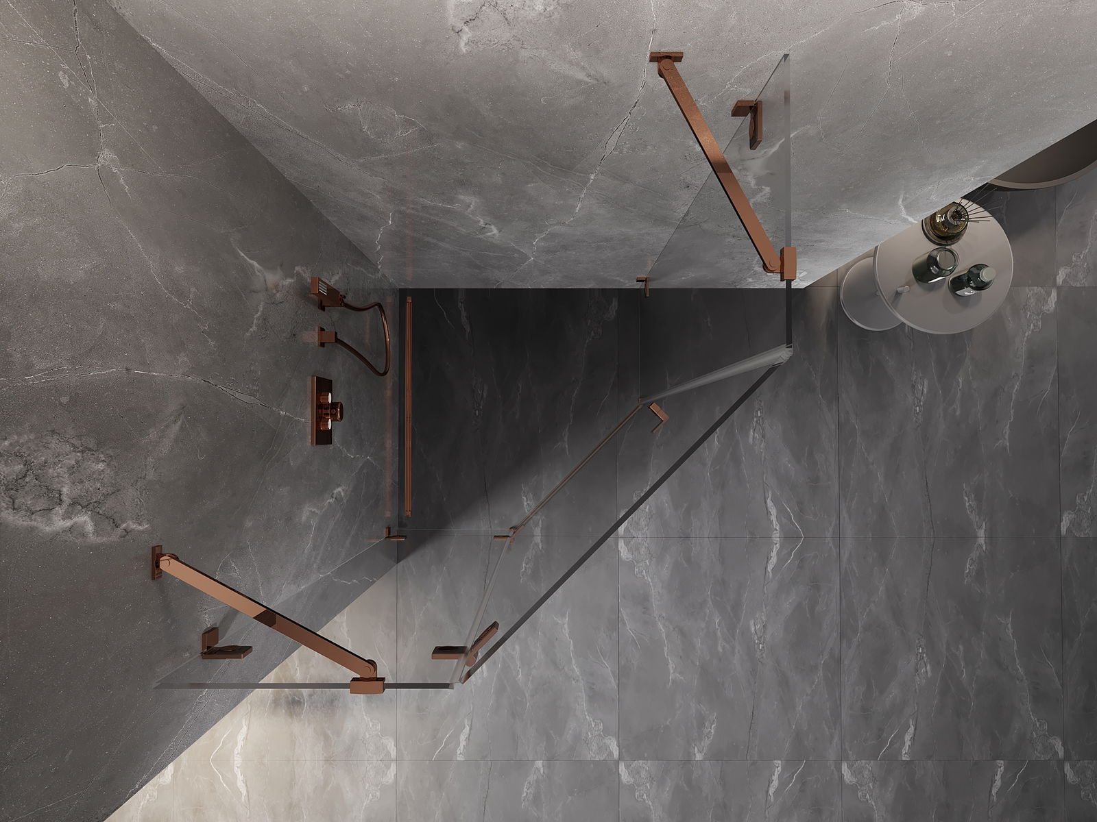 Mexen Lunar петоъгълна душ кабина с врата, лява 90 x 90 cm, прозрачна, розово злато - 831-090L-090P-60-00-L