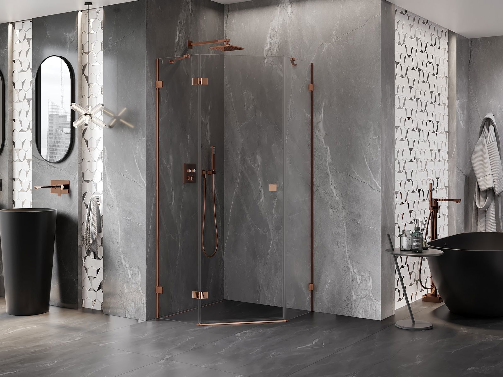 Mexen Lunar петоъгълна душ кабина с врата, отваряща се наляво, 100 x 100 см,