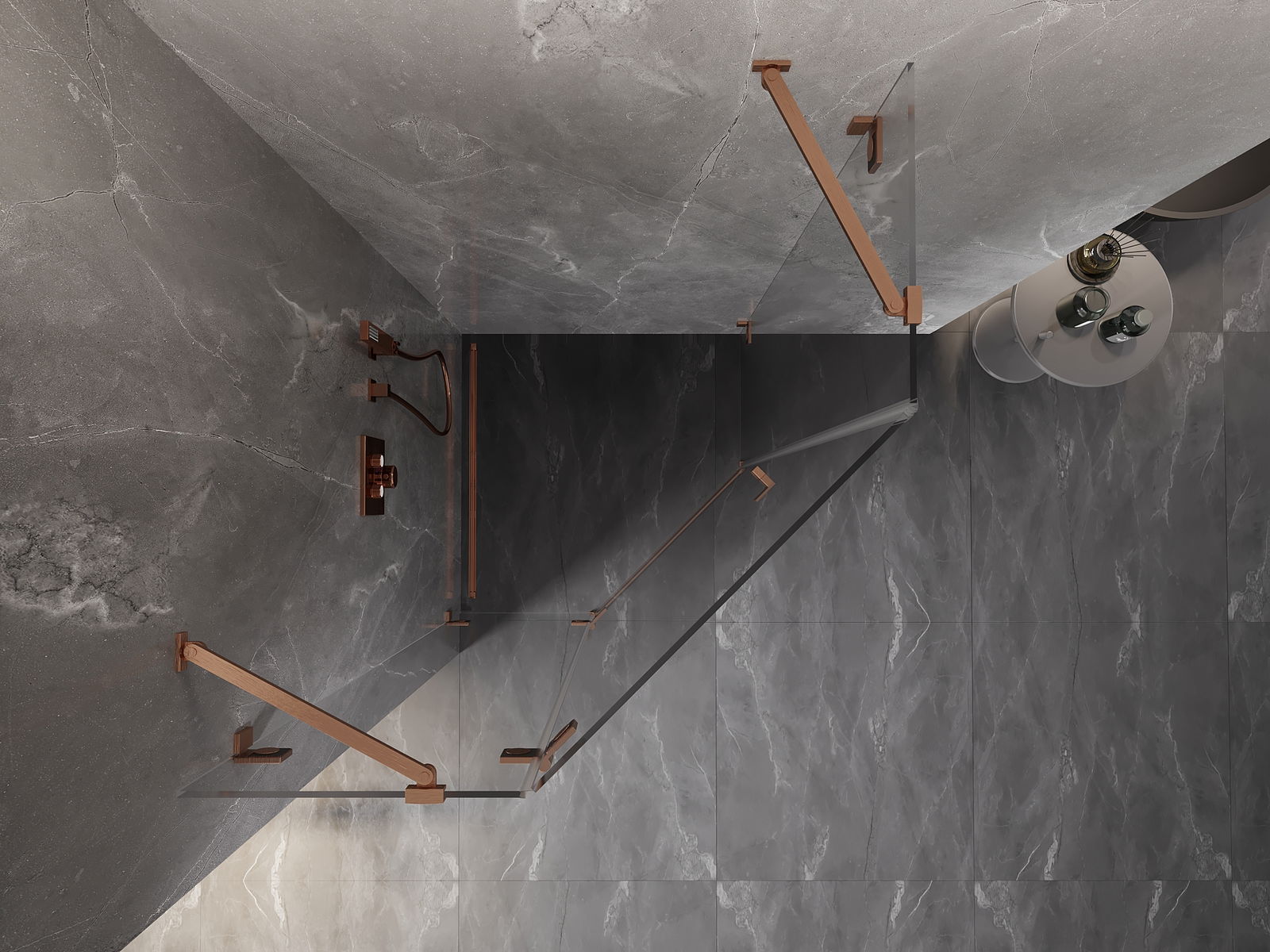 Mexen Lunar петостенна душ кабина с врата, лява 80 x 80 см, прозрачно стъкло, матирана мед - 831-080L-080P-65-00-L