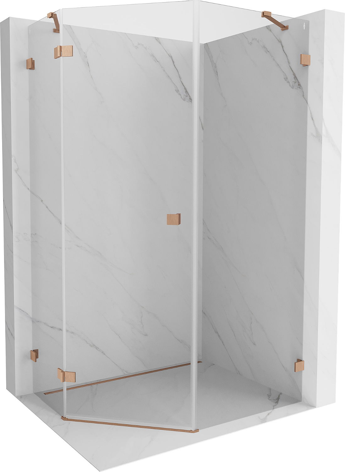 Mexen Lunar петстенна лява душ кабина 80 x 90 cm, прозрачна, матирано мед - 831-080L-090P-65-00-L