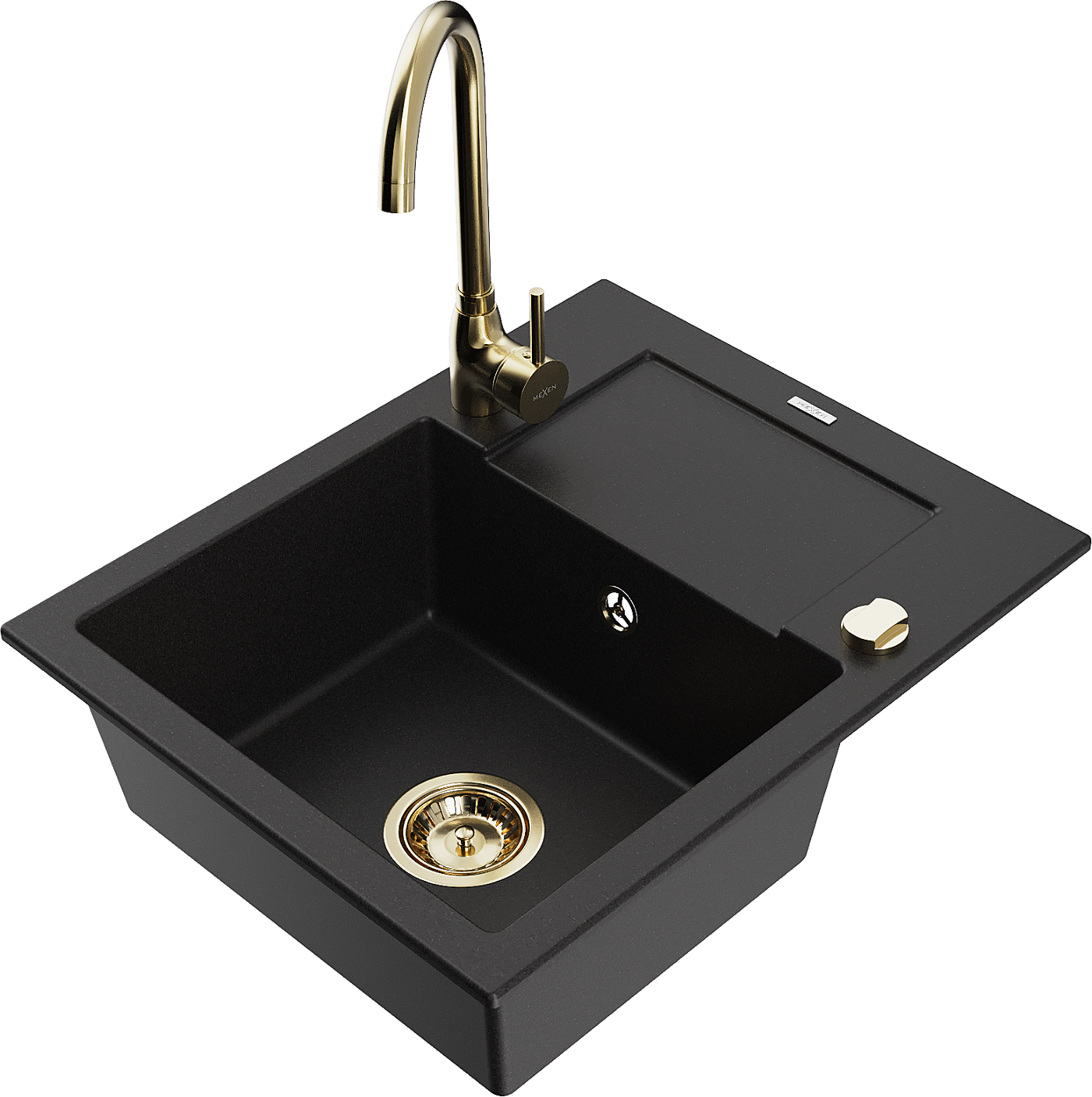 Mexen Enzo гранитна кухненска мивка с 1 отделение с отцедник и кухненски смесител Telma, черен - 6506-77-670200-50