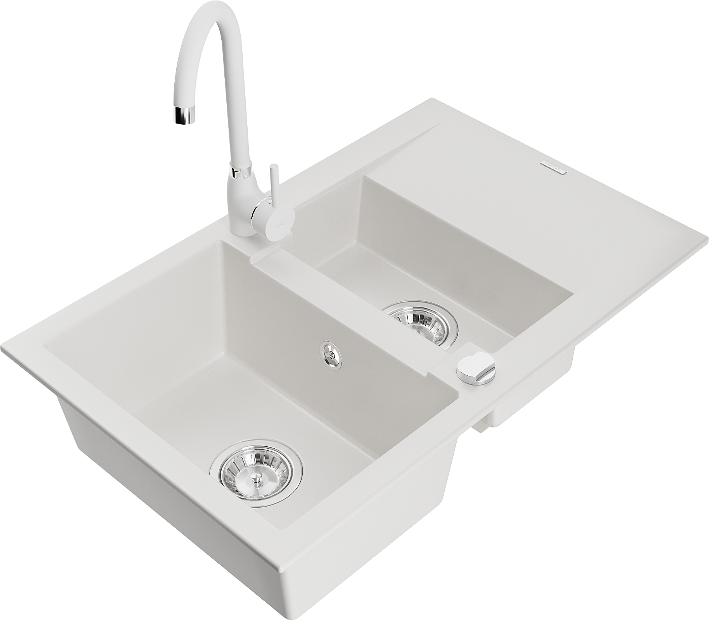 Мексен Гаспар гранитна мивка 1,5 камери с отцедник и кухненски смесител Телма, бяла - 6507-20-670200-20
