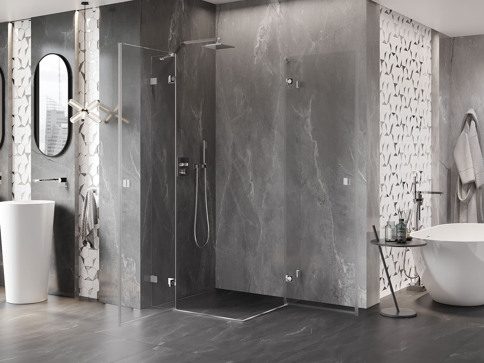 Скобите и пантите са изработени от много издръжлив месинг и създават плосък стъклен панел. Това е отличен избор, който съчетава елегантност, издръжливост и модерен дизайн. Благодарение на такива решения, душът придобива естетика и същевременно улеснява поддържането на чистота.
