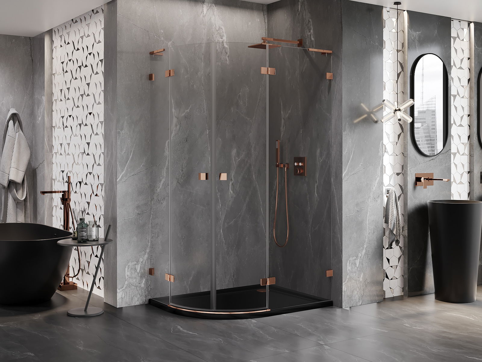 Mexen Lunar L полукръгла дясна душ кабина, отваряема 90 x 80 см, прозрачна, розово злато - 833L-090P-080L-60-00