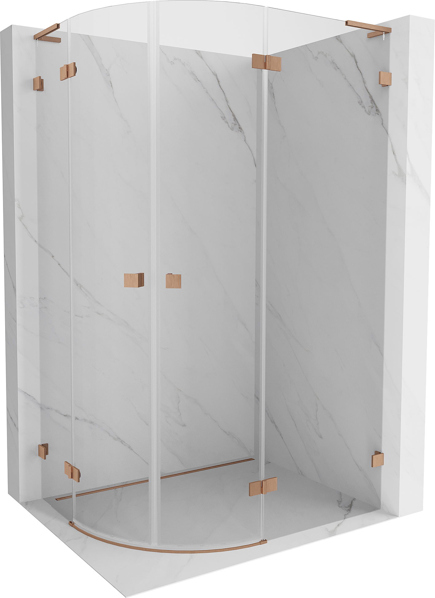 Mexen Lunar L полукръгла душ кабина с отваряема врата дясна 100 x 70 cm, прозрачна, четкана мед - 833L-100P-070L-65-00