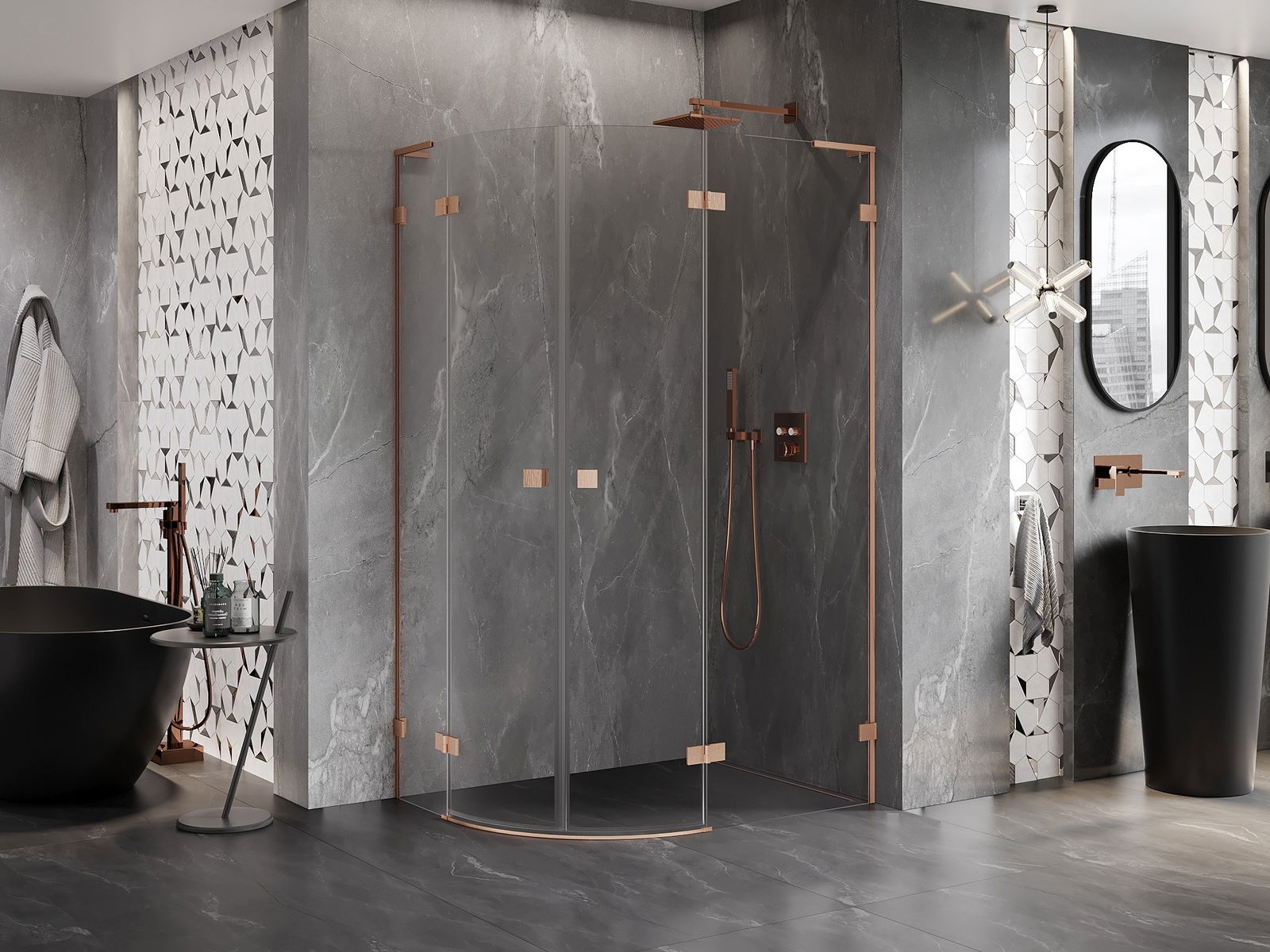 Mexen Lunar L полукръгла душ кабина с отваряща се дясна врата 100 x 80 cm, прозрачна, четкана мед - 833L-100P-080L-65-00