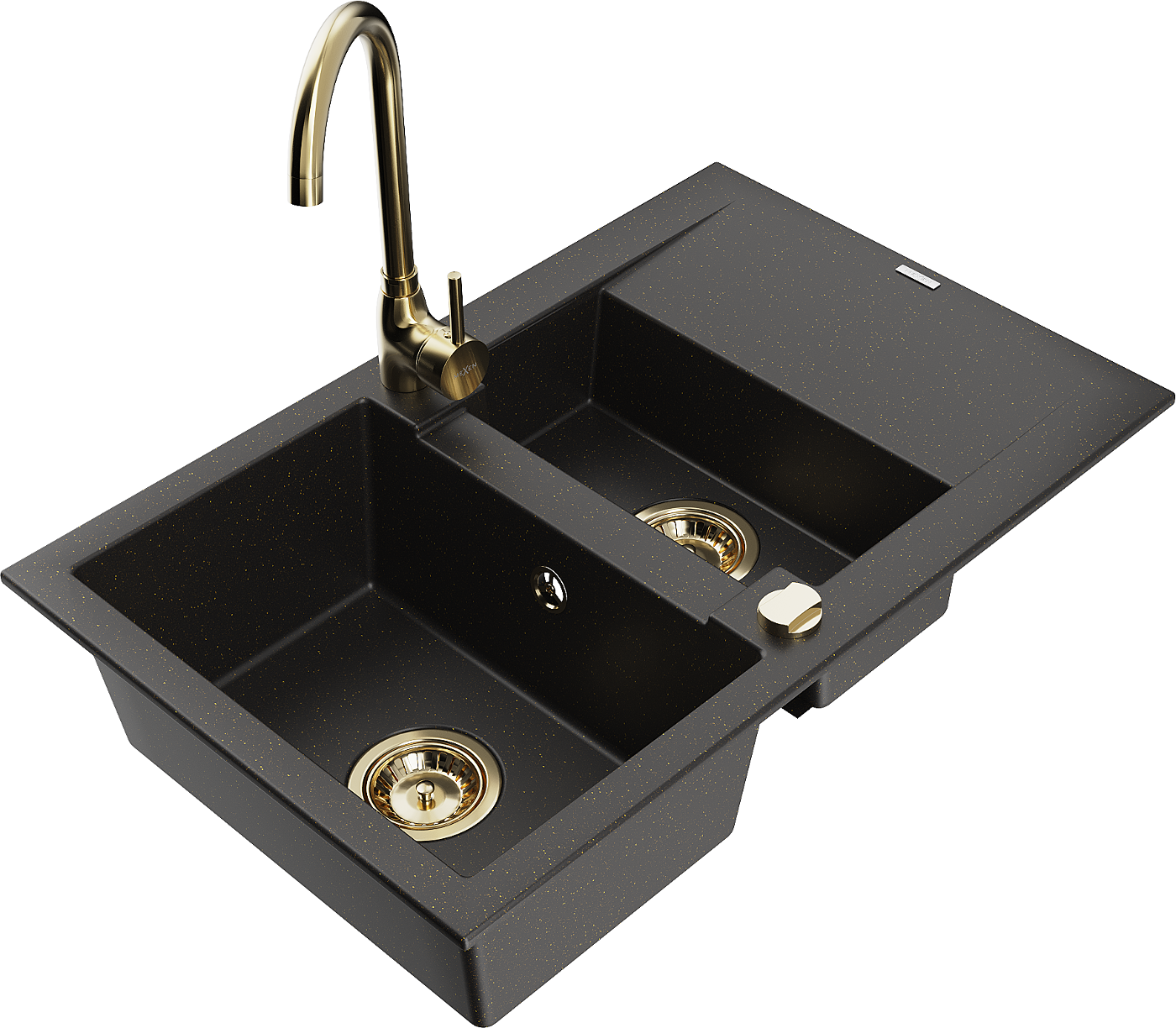 Mexen Gaspar гранитна мивка с 1,5 камери с изцеждач и кухненски смесител Telma,
