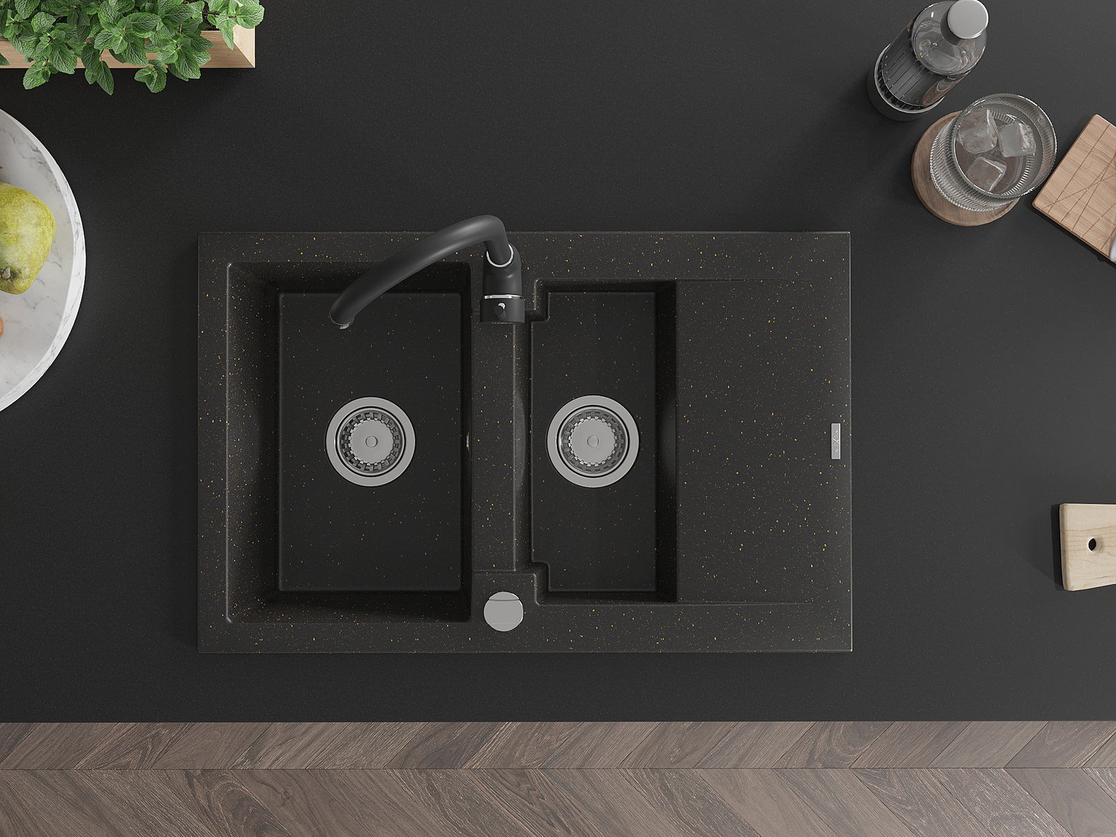 Мивката е направена от висококачествен гранит. Това е елегантно и най -вече практично допълнение към всяка кухня, независимо от нейния стил. Висококачествената и гранитна издръжливост осигуряват много години употреба.