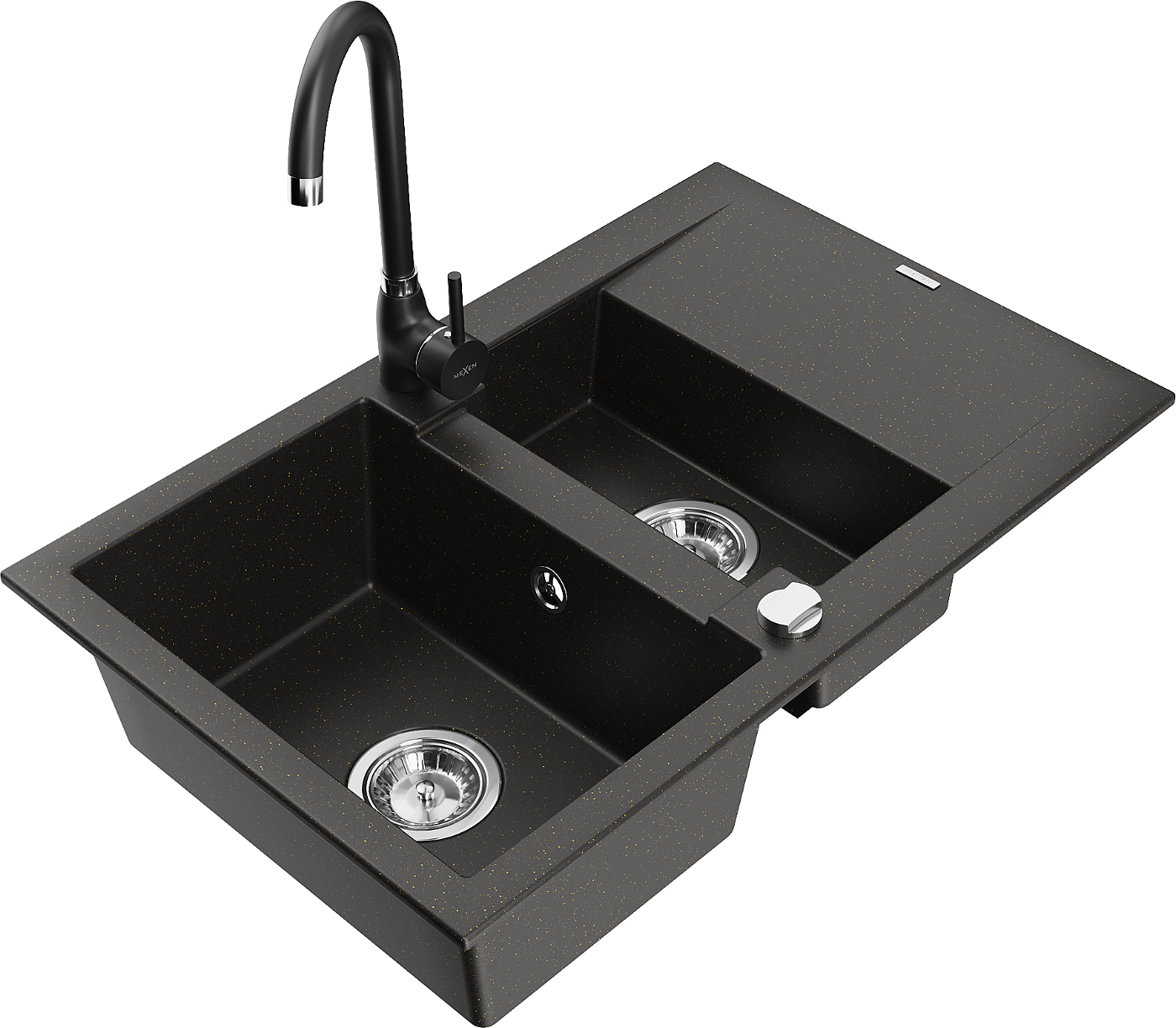 Mexen Gaspar гранитна мивка 1,5-камерна с отцедник и кухненски смесител Telma, черен/златист - 6507-75-670200-70