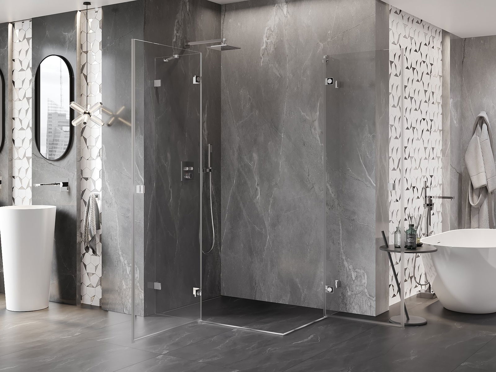 Скобите и пантите са изработени от много издръжлив месинг и създават плосък стъклен панел. Това е отличен избор, който съчетава елегантност, издръжливост и модерен дизайн. Благодарение на такива решения, душът придобива естетика и същевременно улеснява поддържането на чистота.