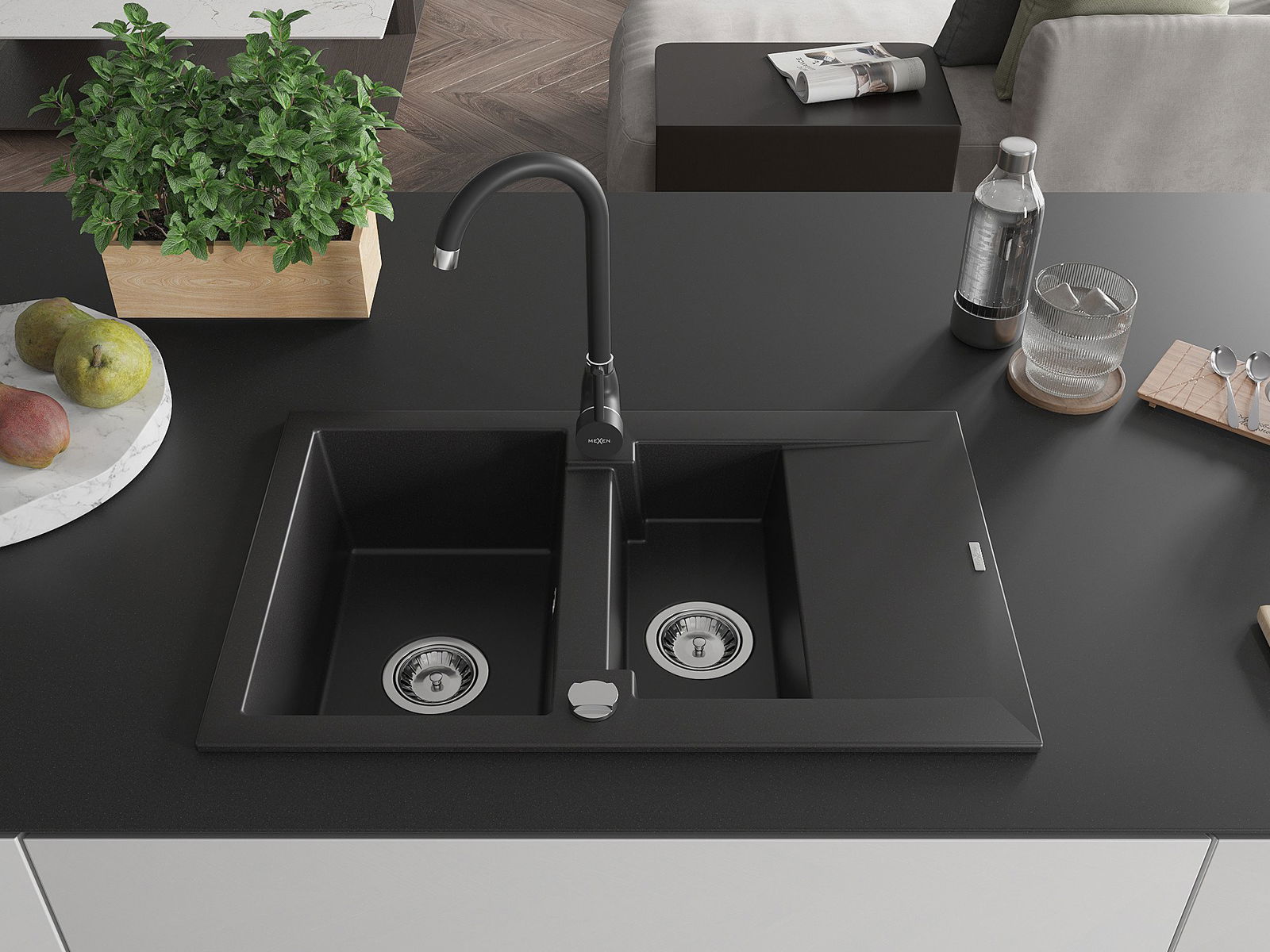 Mexen Gaspar гранитна мивка с 1,5 камери с отцедник и кухненски смесител Telma,