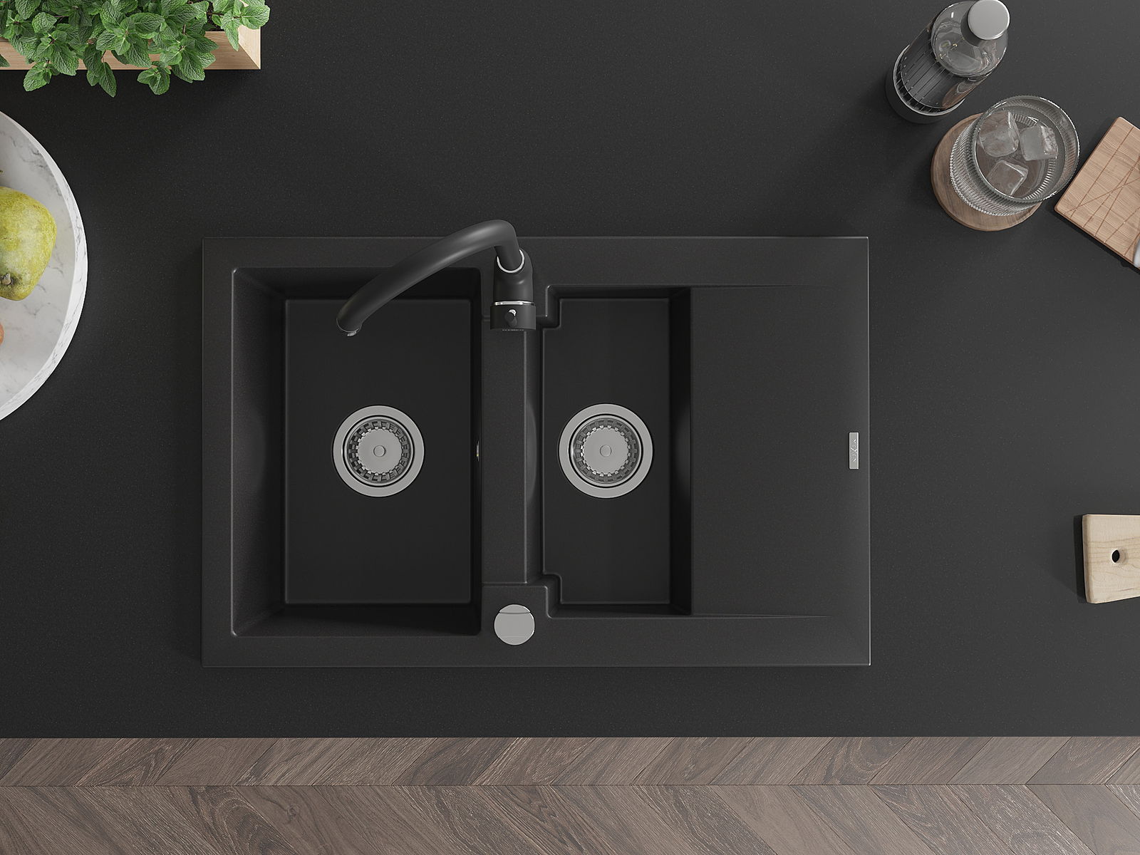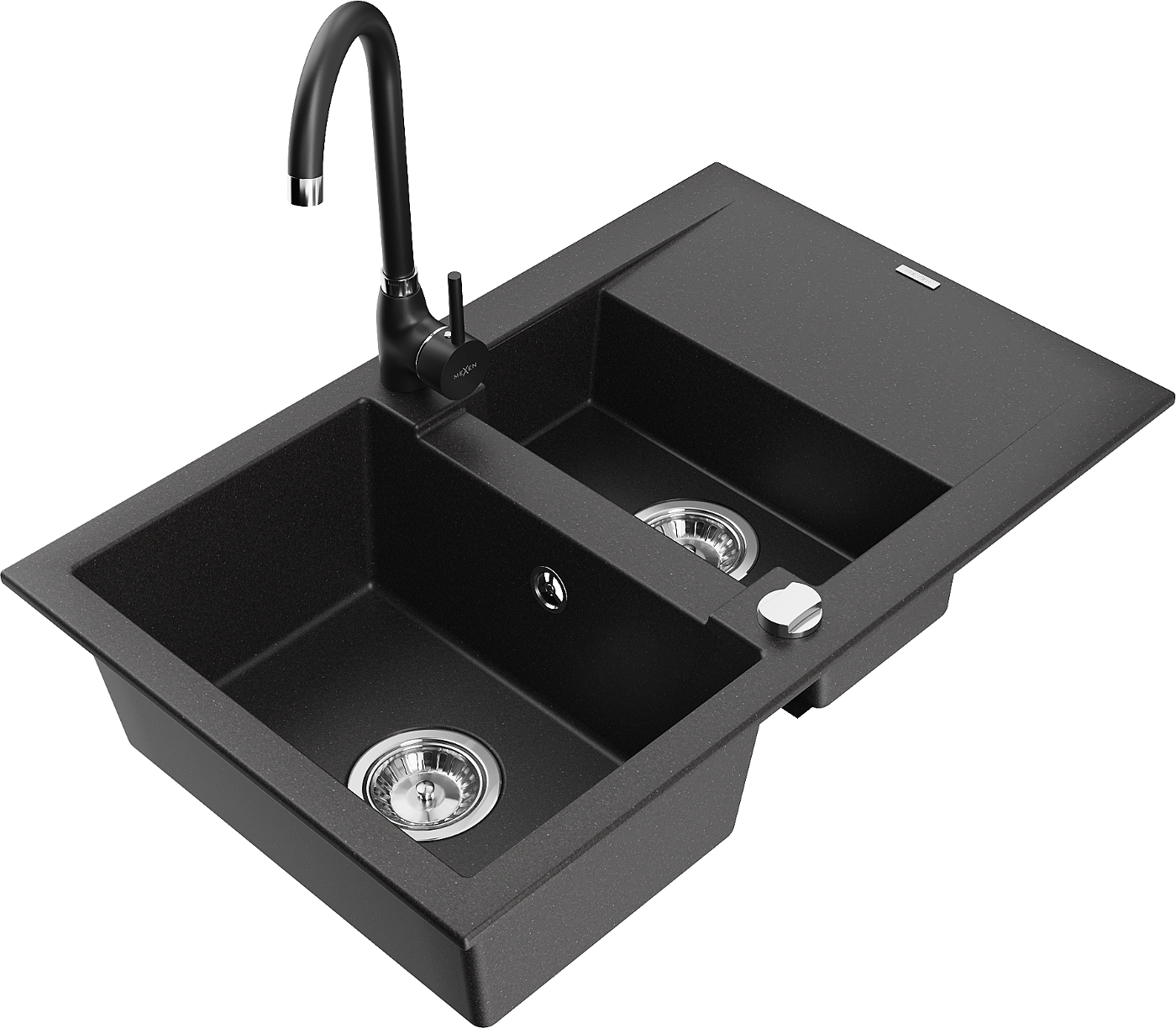 Мивка от гранит Mexen Gaspar с 1,5 камери с отцедник и кухненски смесител Telma, черен - 6507-77-670200-70