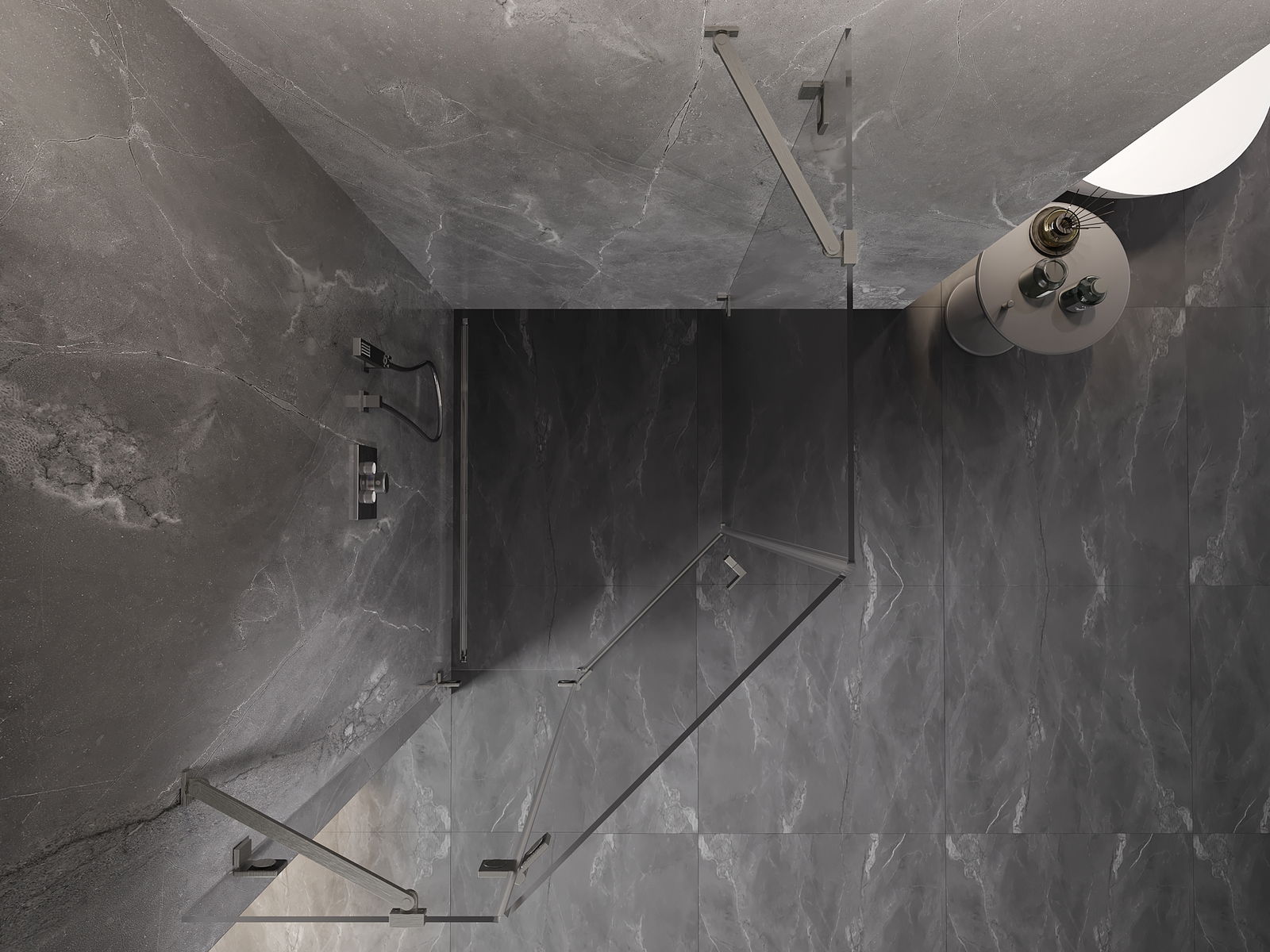Удобната и практична дръжка е изработена от здрав и устойчив метал. Модерната форма в съчетание с покритието, съответстващо на цвета на профилите, придава на цялото модерен и стилен вид, подчертавайки естетиката на всяка баня.