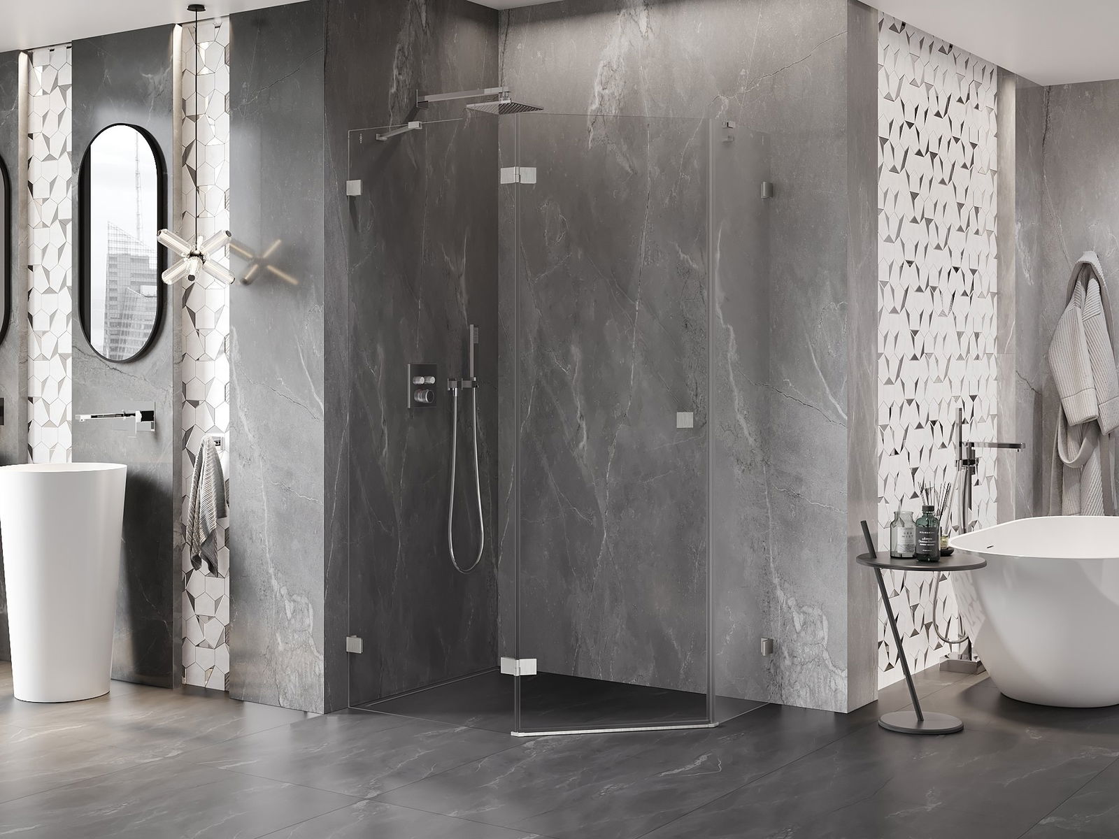 Скобите и пантите са изработени от много издръжлив месинг и създават плосък стъклен панел. Това е отличен избор, който съчетава елегантност, издръжливост и модерен дизайн. Благодарение на такива решения, душът придобива естетика и същевременно улеснява поддържането на чистота.