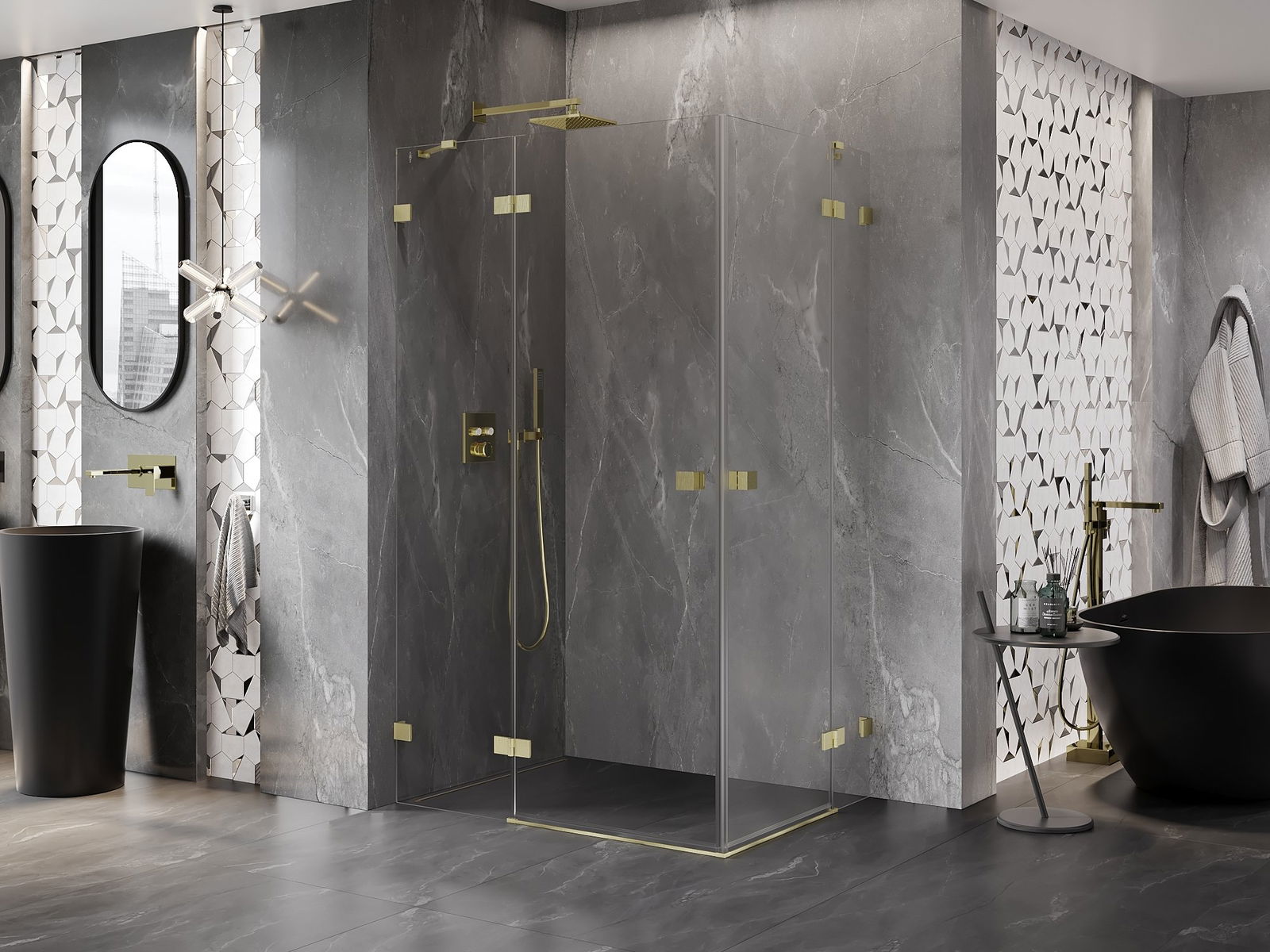 Скобите и пантите са изработени от много издръжлив месинг и създават плосък стъклен панел. Това е отличен избор, който съчетава елегантност, издръжливост и модерен дизайн. Благодарение на такива решения, душът придобива естетика и същевременно улеснява поддържането на чистота.