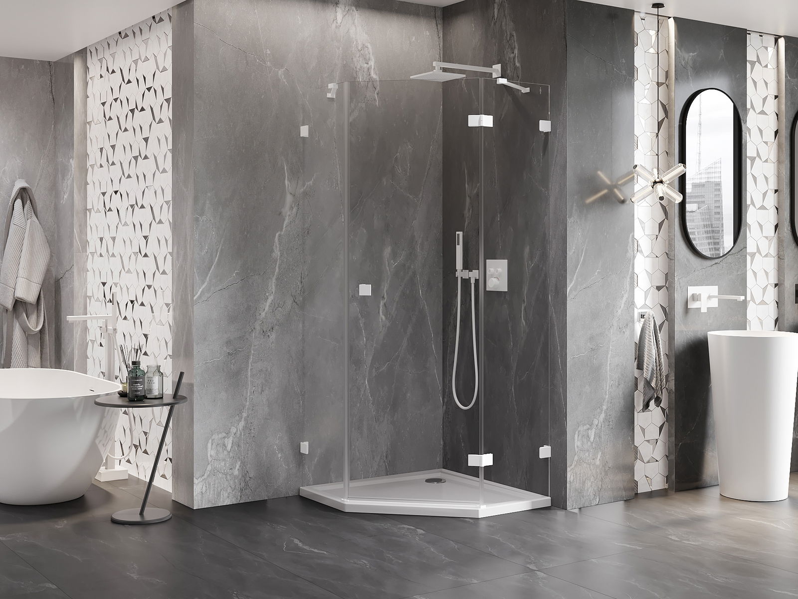 Mexen Lunar петстенно право душ кабина 100 x 100 см, прозрачно, бяло - 831-100P-100L-20-00-P