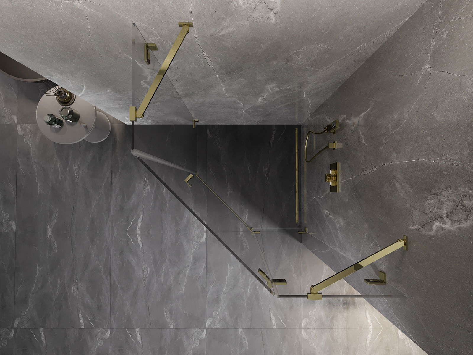 Mexen Lunar петостенна душ кабина с десен отварящ се панел 100 x 100 см, прозрачна, златиста - 831-100P-100L-50-00-P
