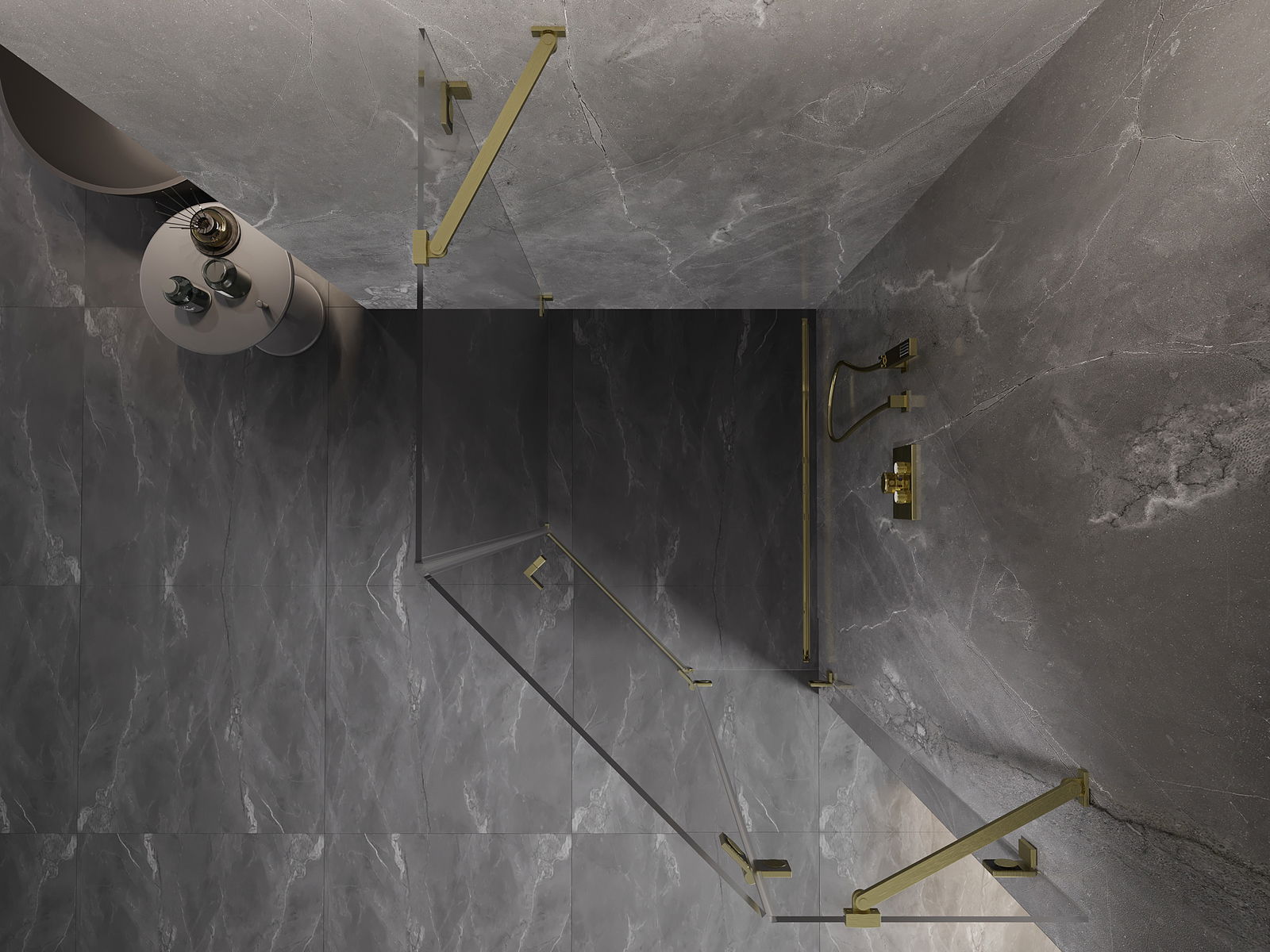 Mexen Lunar петоъгълна душ кабина, врата с дясно отваряне 80 x 90 см, прозрачна, златиста четкана - 831-080P-090L-55-00-P