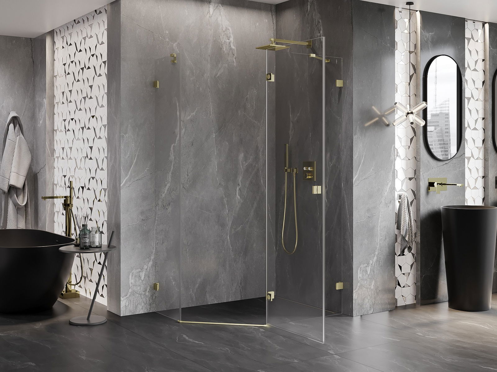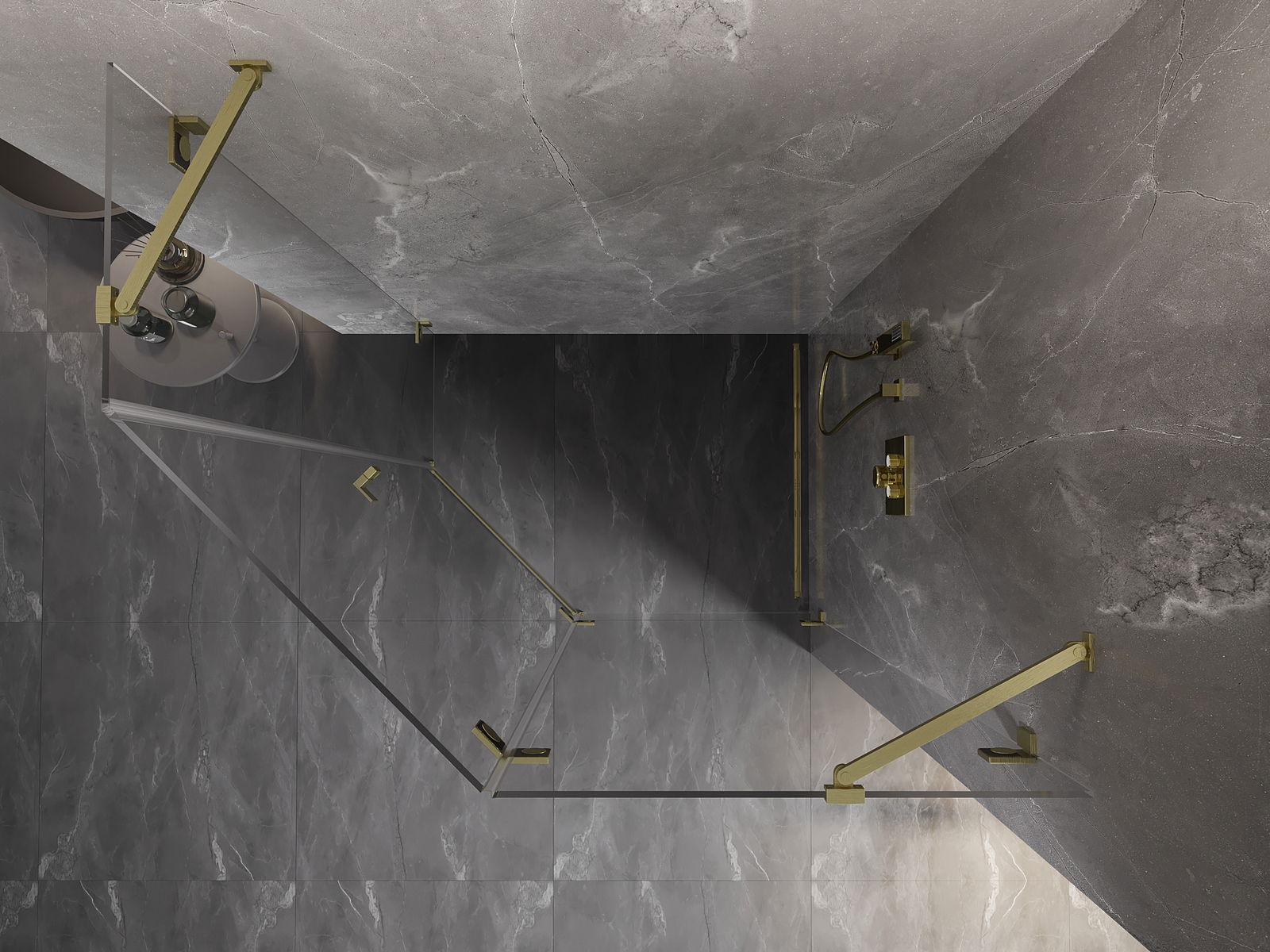 Mexen Lunar петстенна душ-кабина, отваряема надясно 90 x 80 cm, прозрачна, злато-щеткована - 831-090P-080L-55-00-P