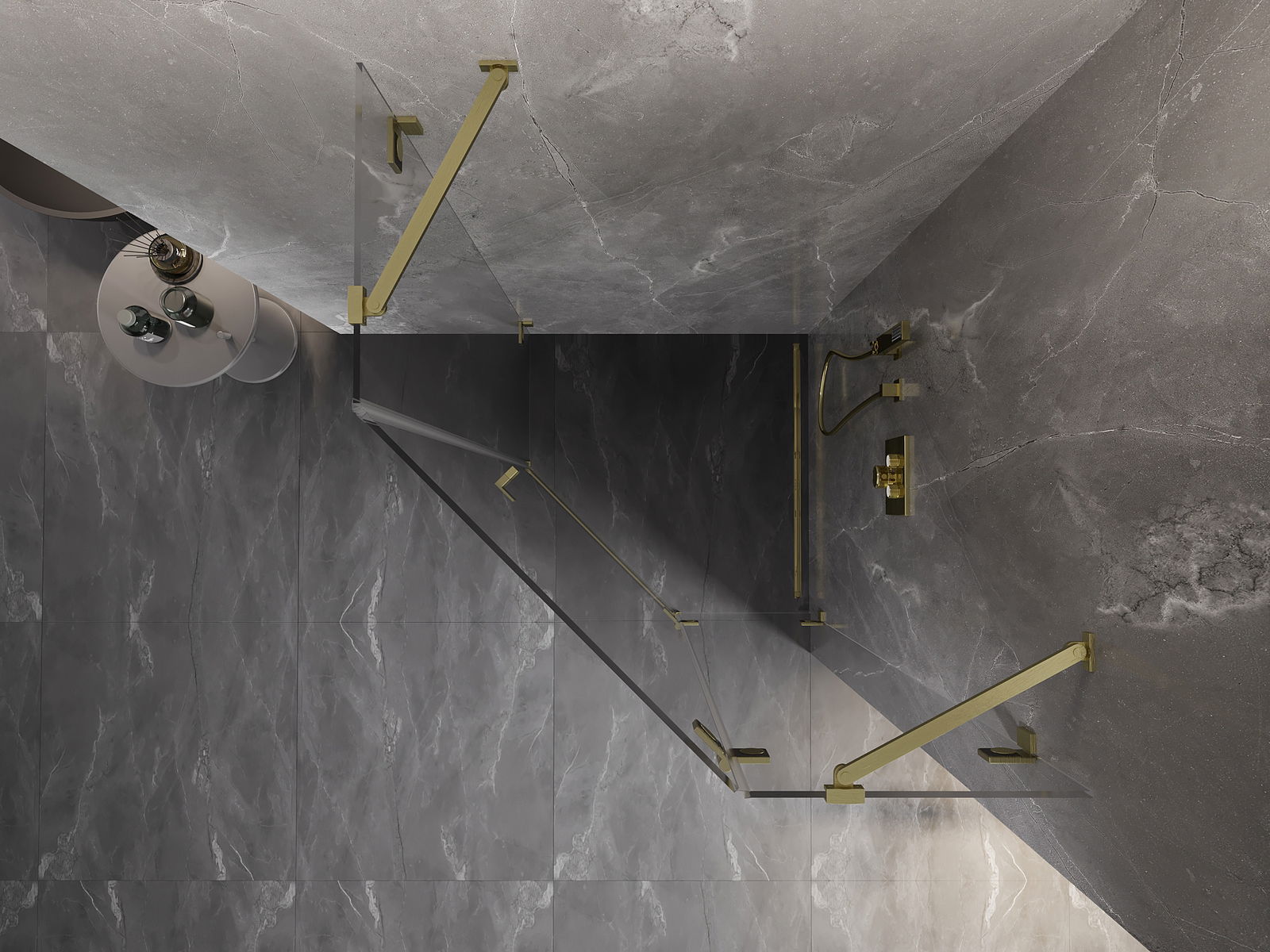 Mexen Lunar петстенна душ кабина с панти дясна 90 x 90 см, прозрачна, златна матирана - 831-090P-090L-55-00-P
