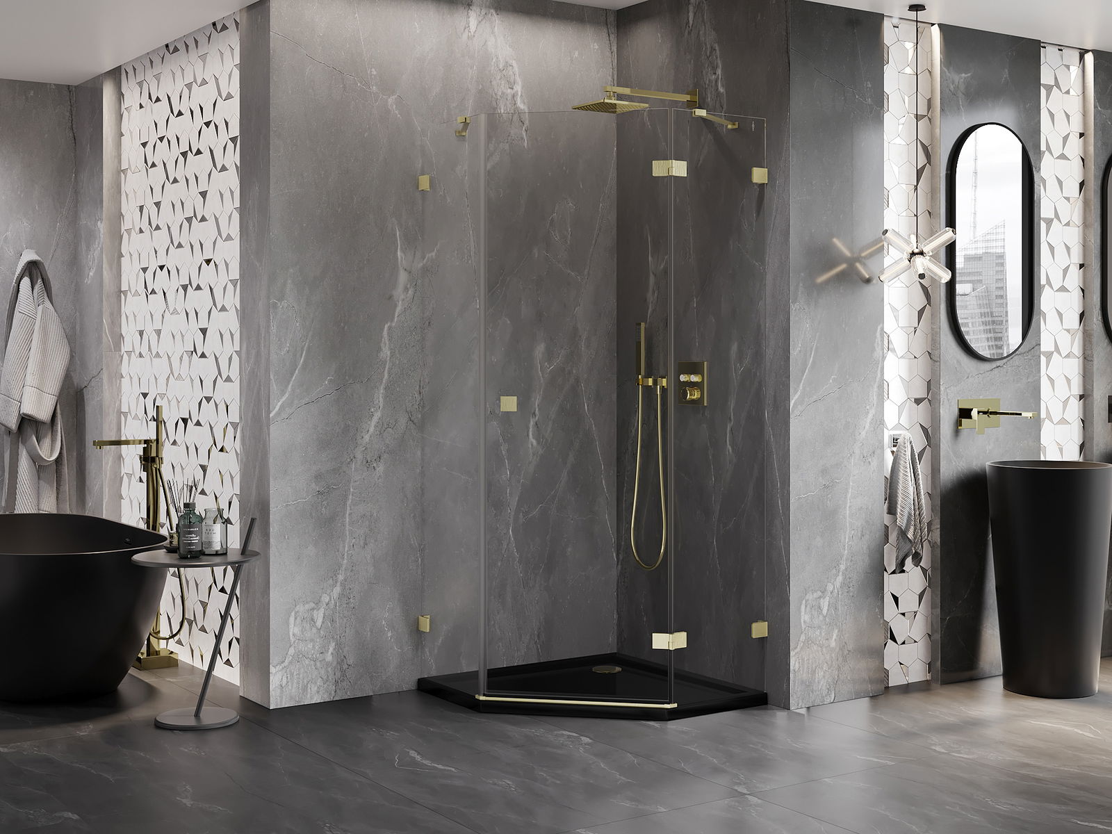 Mexen Lunar петостенна душ кабина с врата вдясно 100 x 100 см, прозрачна,