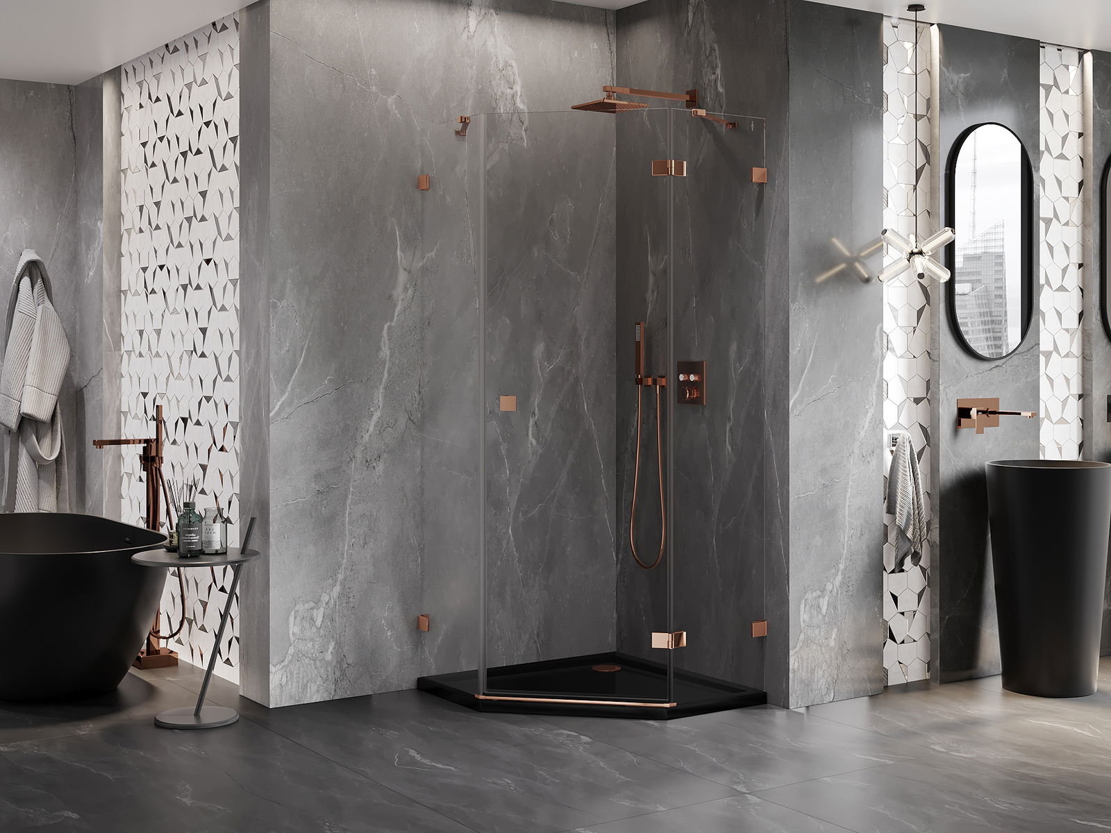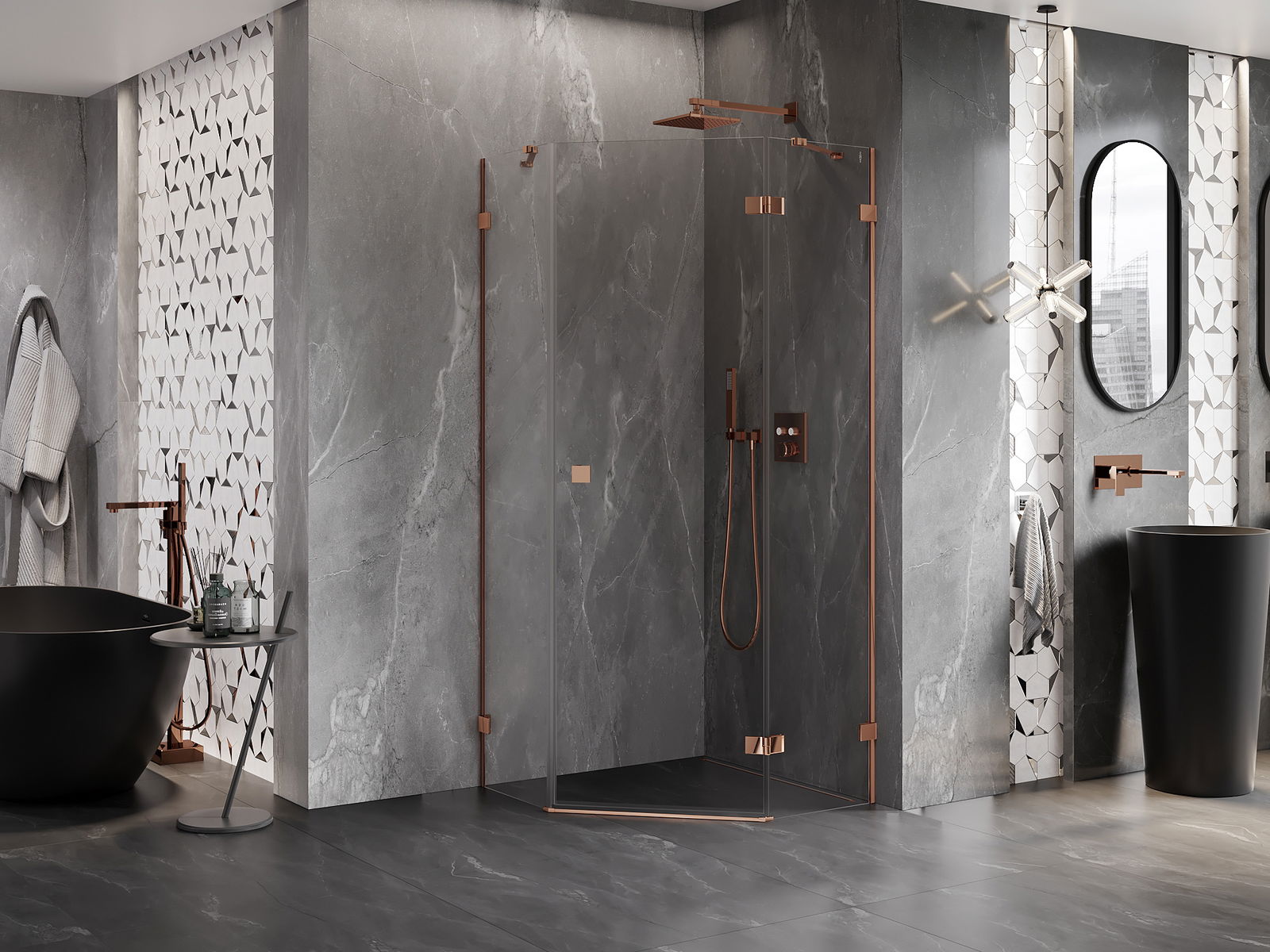 Mexen Lunar петстенна душ кабина с дясно отваряне 80 x 80 cm, прозрачна, розово злато - 831-080P-080L-60-00-P